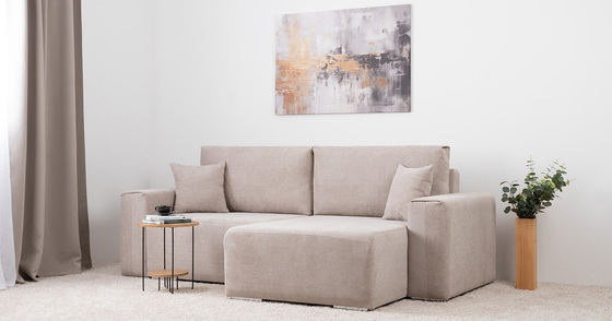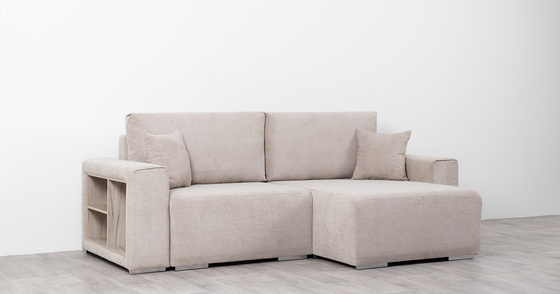 Диван-кровать угловой Оксфорд 710 композиция 2, шенилл Muza 04 светло-бежевый, модульная система, сборка на любую сторону