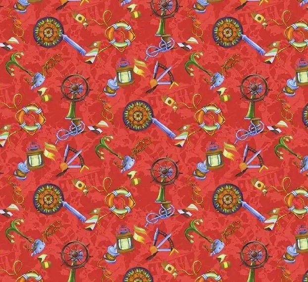 Детская ткань на выбор в соответствии с картинкой карточки - Т 45 штурвалы на красном.