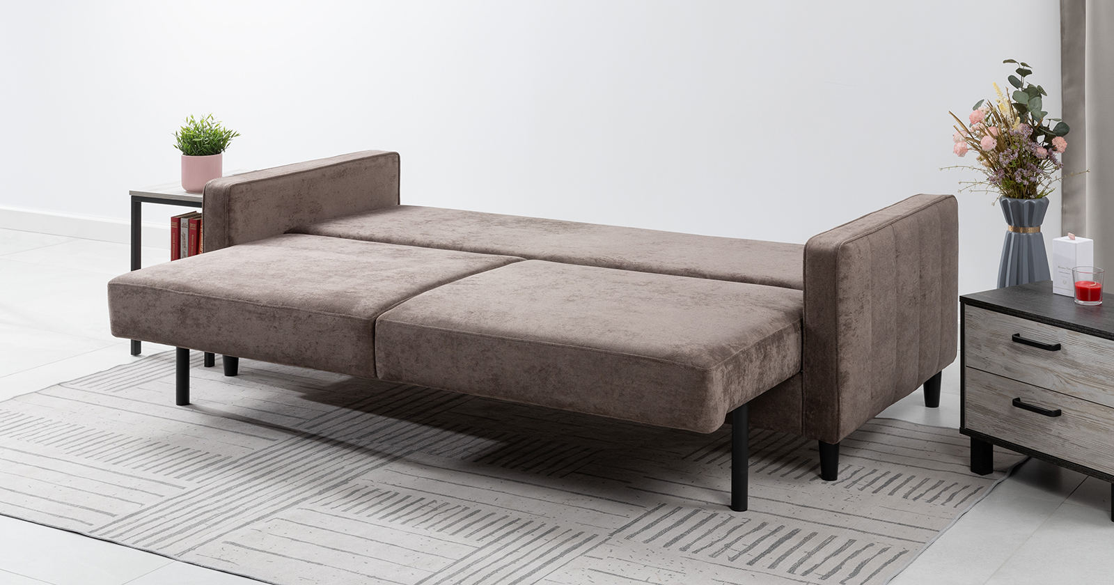 Объемные подушки дивана обеспечивают эргономичную посадку, а ровное спальное место - полноценный ночной отдых.