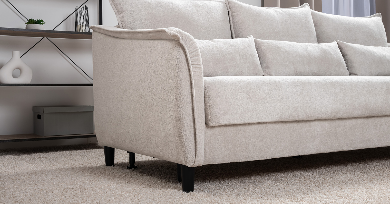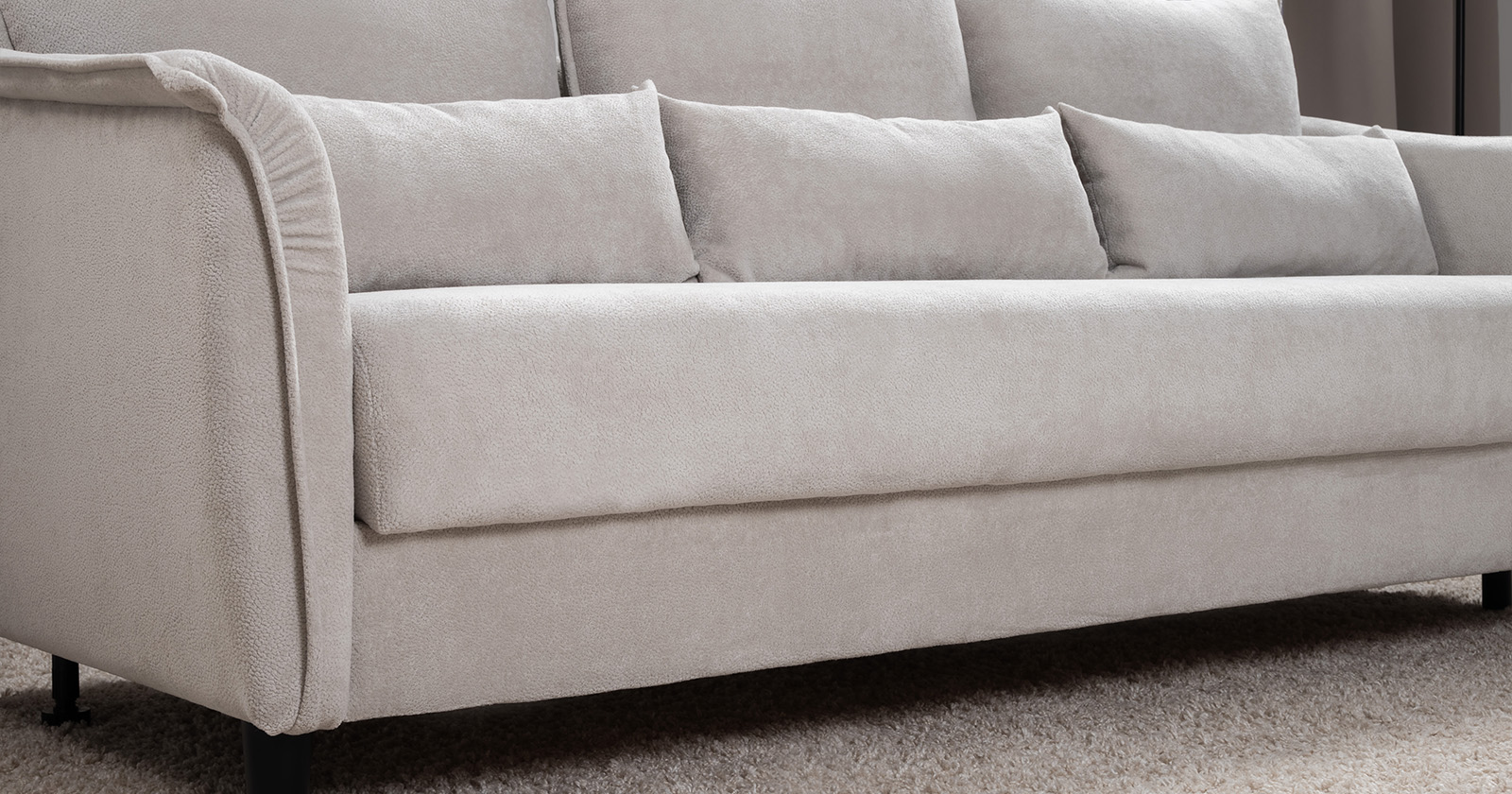 Изогнутые подлокотники в форме лепестков придают коллекции изысканный и элегантный вид, а дополнительные декоративные подушки обеспечат поддержку тела и помогут уютно устроиться на диване. В наполнении дивана используется высокоэластичная пена, которая адаптируется к форме вашего тела и гаранитует максимальный комфорт во время отдыха.