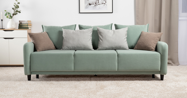 Диван-кровать прямой Дакота ТД 585 велюр Vendetta 18 ментоловый, Marcello-5 1327 A1 col 19 ментоловый орнамент, Romeo 03