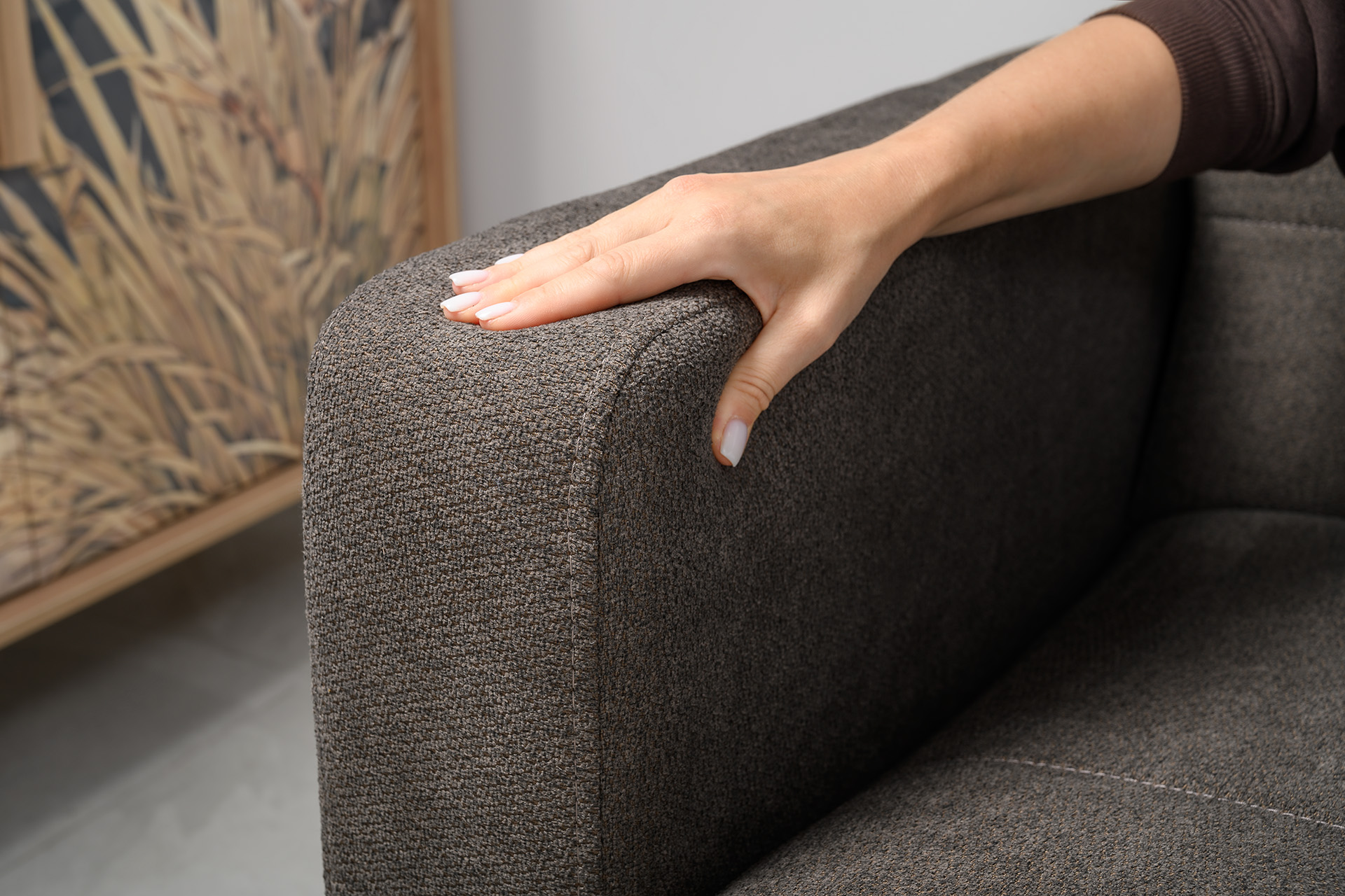 Едва заметный эффект букле на мягкой и объемной фактуре наполняет общую атмосферу интерьера теплом.