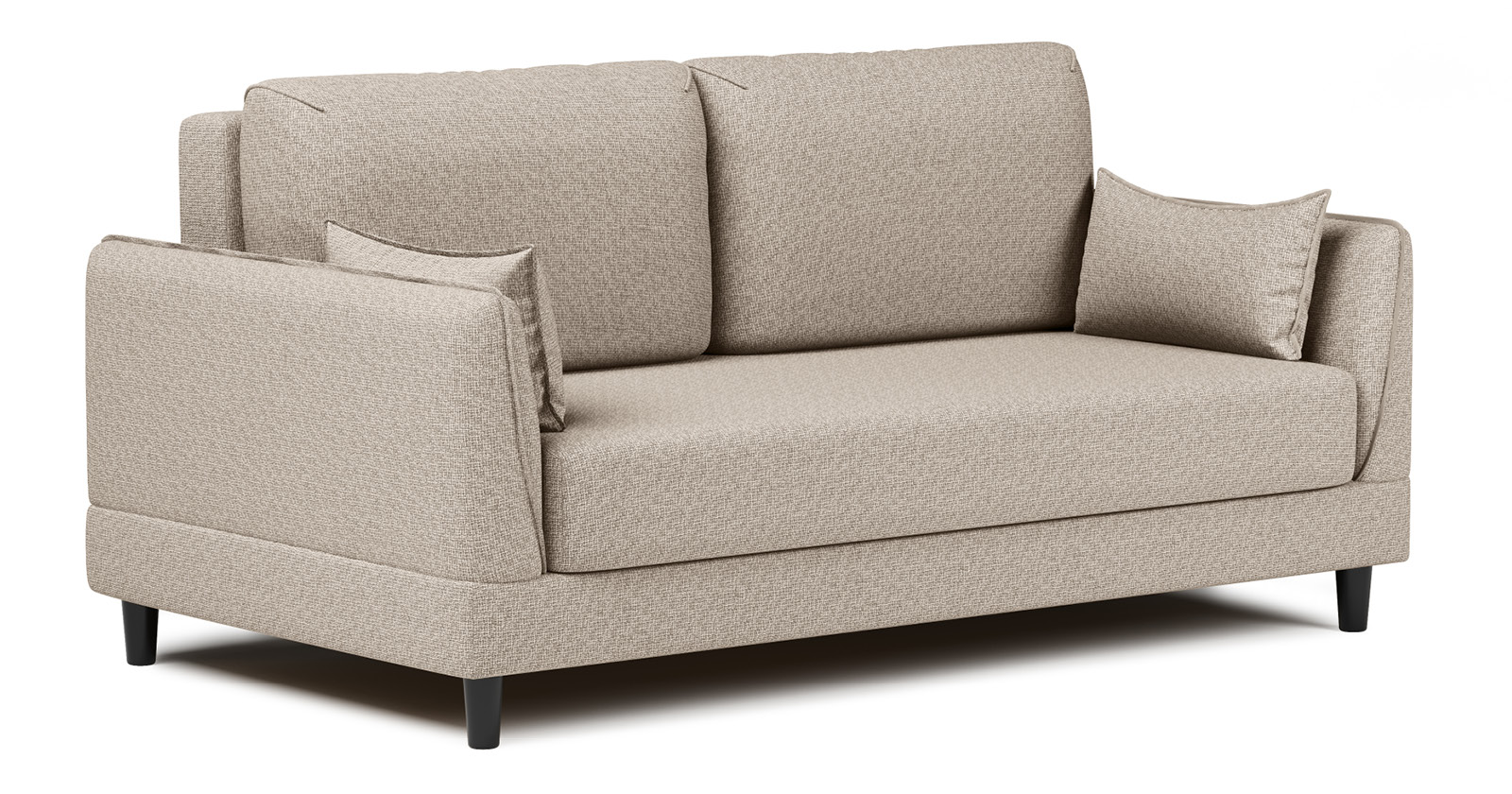 Лаконичный дизайн с деревянными ножками и узкими подлокотниками удачно дополнит не только интерьер гостиной, но и кабинета, и кухни. Кроме того, диван Макс позволяет организовать спальное место в ограниченном пространстве.