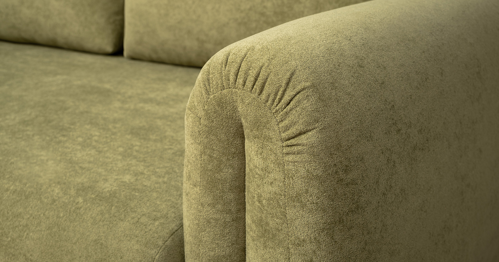 Декоративные утяжки и складки на подлокотниках придают дивану неповторимый шарм, который станет изюминкой любого интерьера — от классического до современного. Приспинные подушки со сборкой в верхней части.