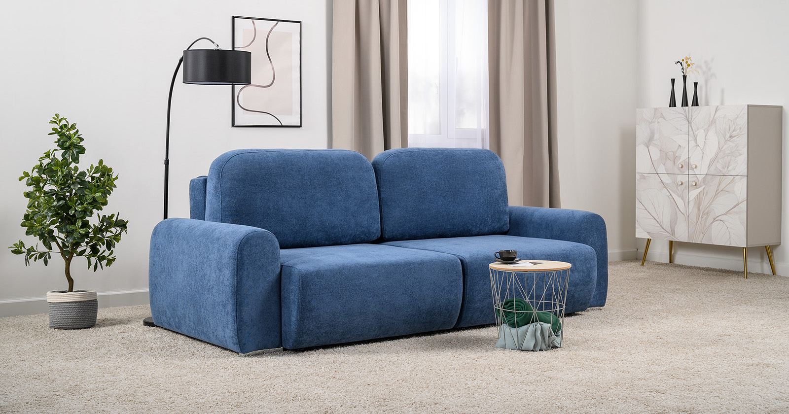 Диван-кровать прямой Тэдди 1504 композиция 1, букле Pique 009 синий, модульная система