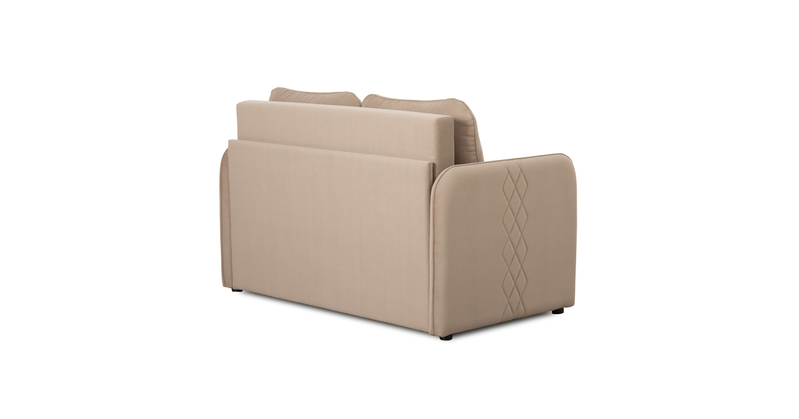 Стильный компактный диван для детской и гостиной. При своих скромных размерах он трансформируется в полноценное спальное место для детей и подростков. Лаконичный дизайн в виде декоративной стежки подчеркивает фактуру велюра, а небольшие размеры позволят разместить его в любом пространстве.