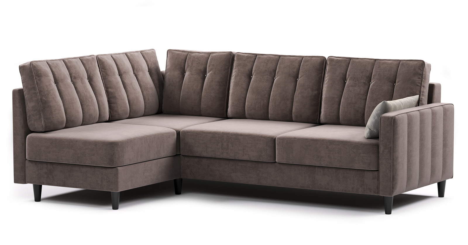Диван-кровать угловой Арно ТД 567 велюр Лаки 17 пепел розы, Vertical 910 молочно-серый, сборка на любую сторону