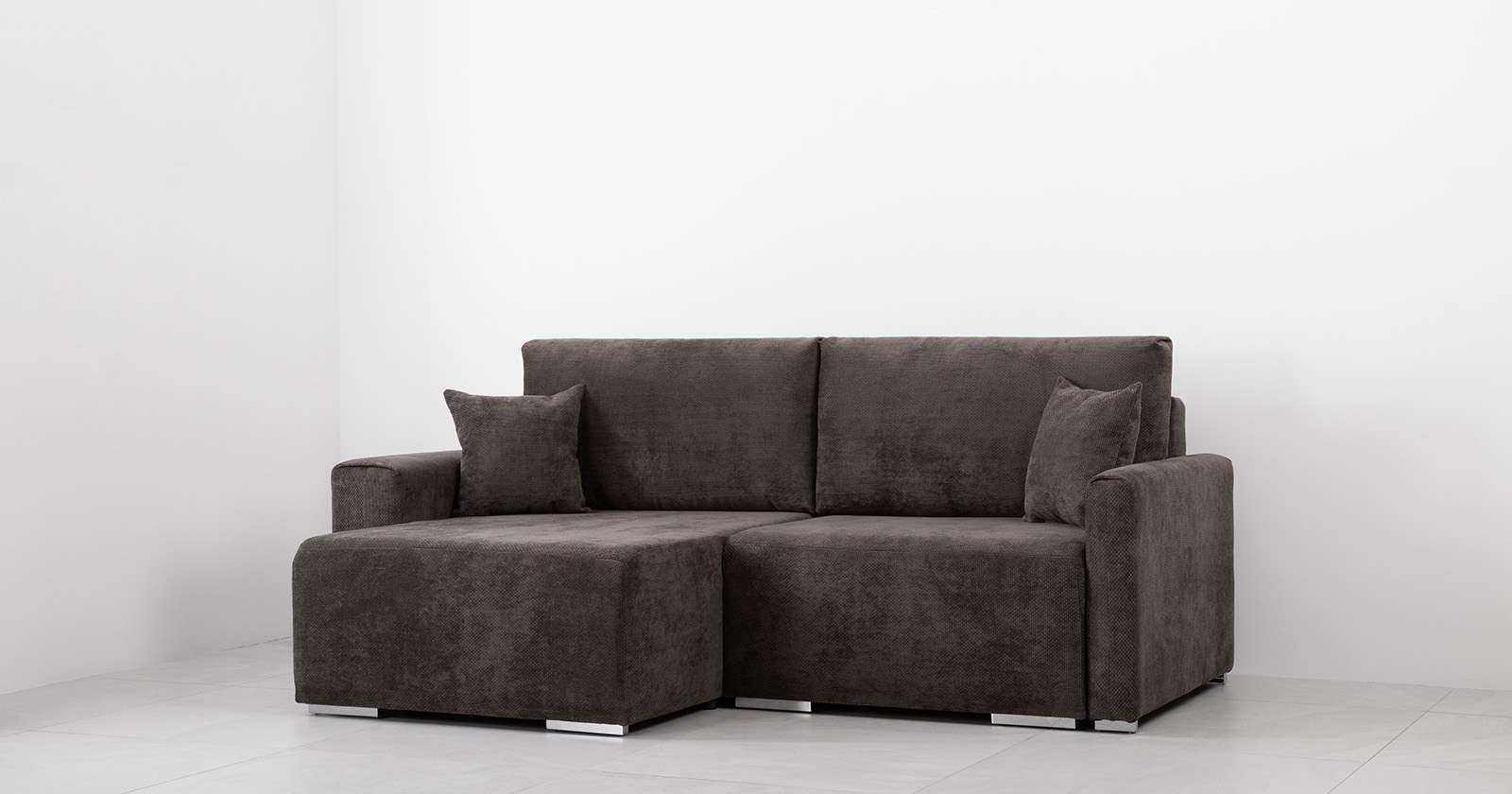 Диван-кровать угловой Оксфорд 711 композиция 5, Muza 06 темно-коричневый, модульная система, сборка на любую сторону