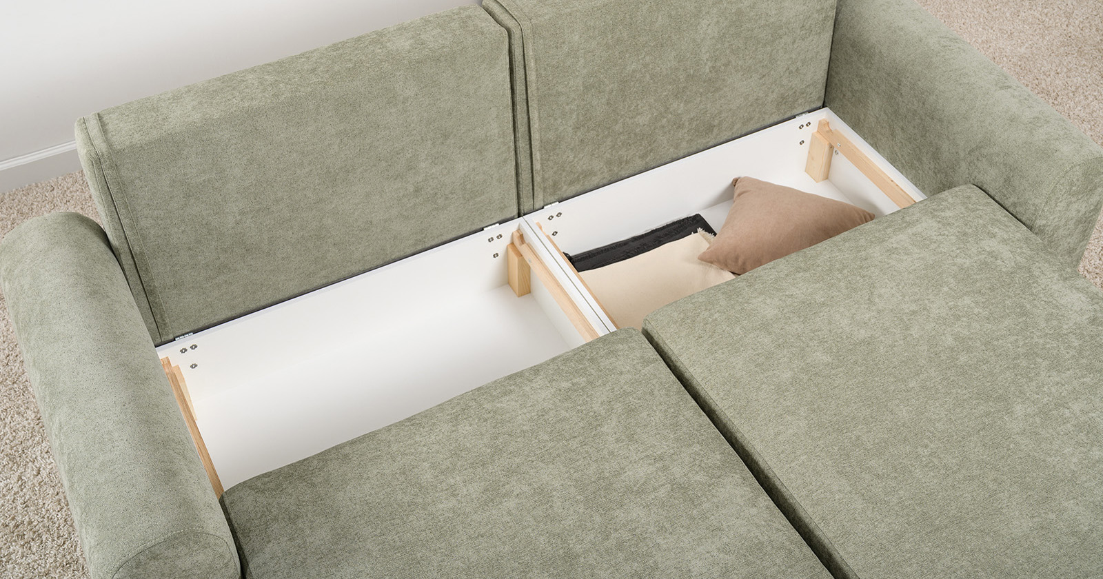 Диван-кровать угловой Тэдди 1503 композиция 3, букле Pique 007 оливковый, модульная система, сборка на любую сторону