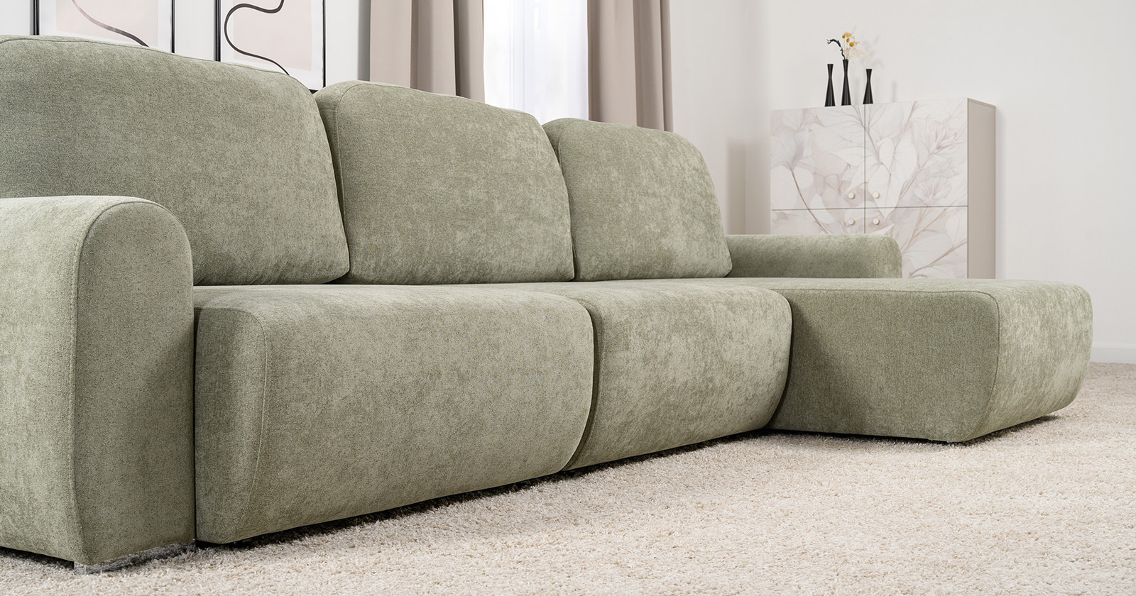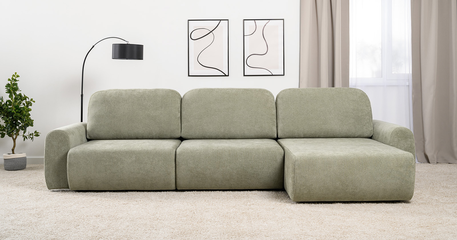 Диван-кровать угловой Тэдди 1503 композиция 3, букле Pique 007 оливковый, модульная система, сборка на любую сторону