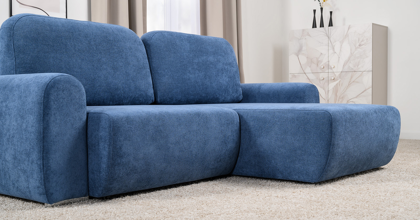 Диван-кровать угловой Тэдди 1504 композиция 2, букле Pique 009 синий, модульная система, сборка на любую сторону