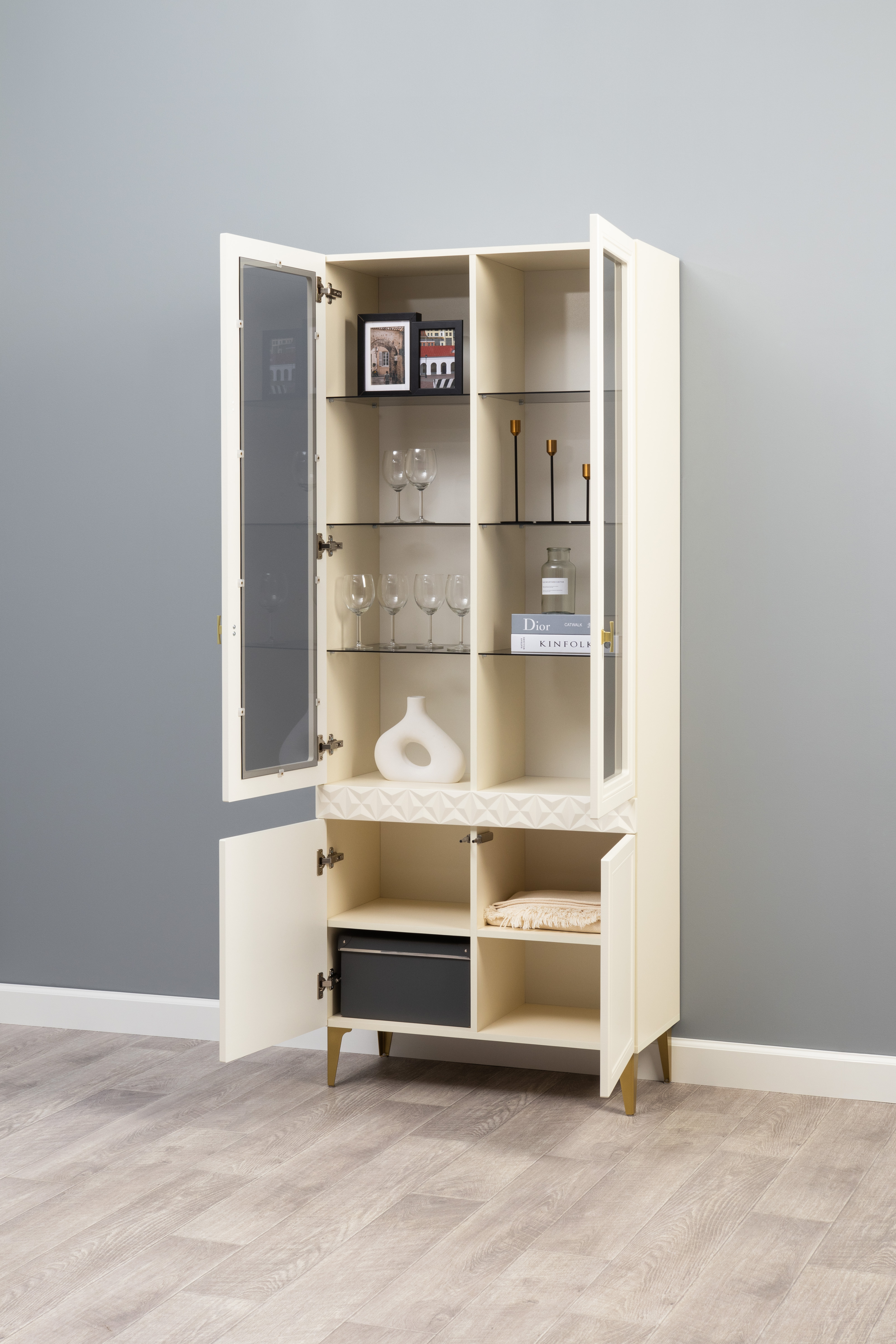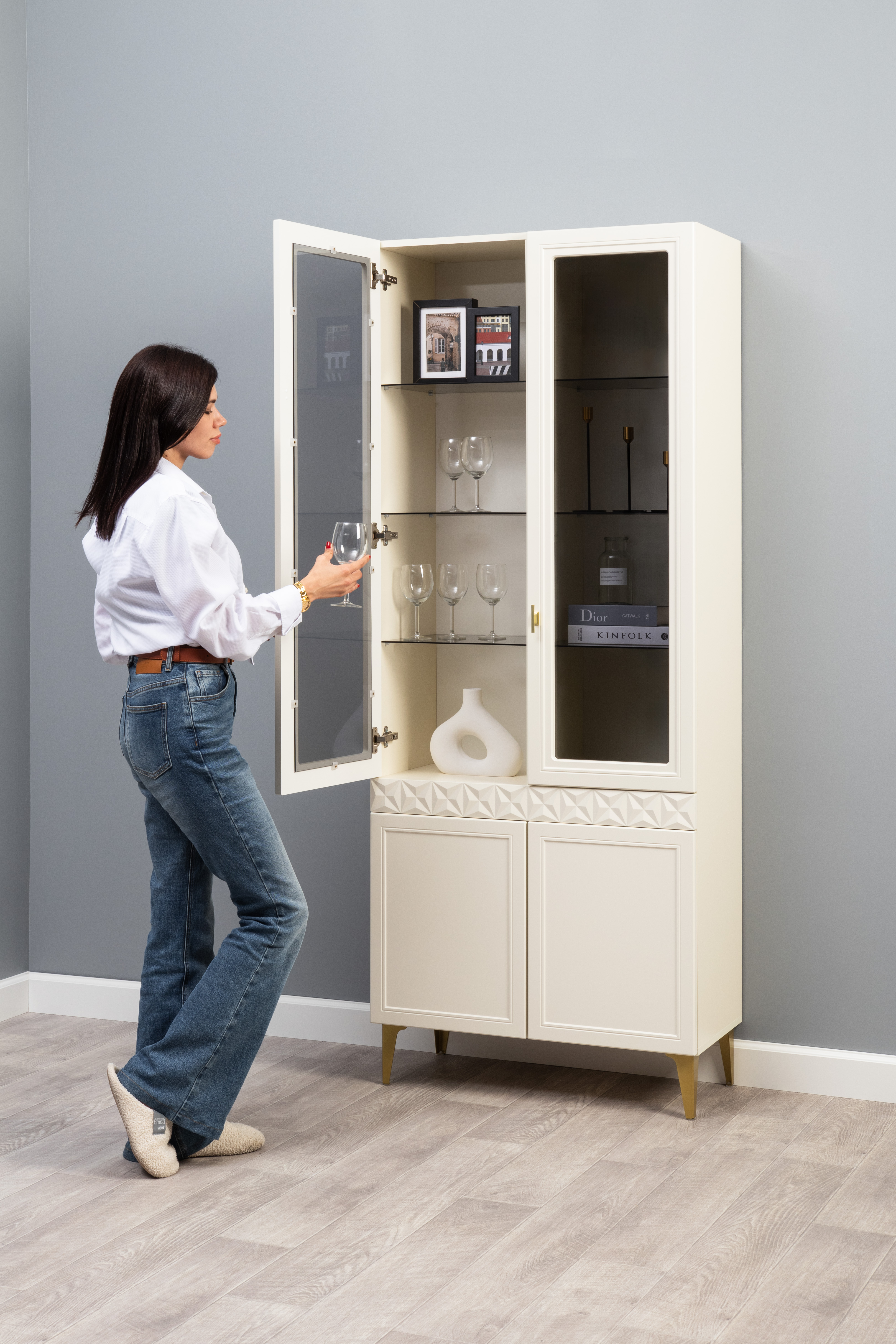 Шкаф-витрина Марион 16.397.02 слоновая кость С341 PE, слоновая кость 6898 ПВХ