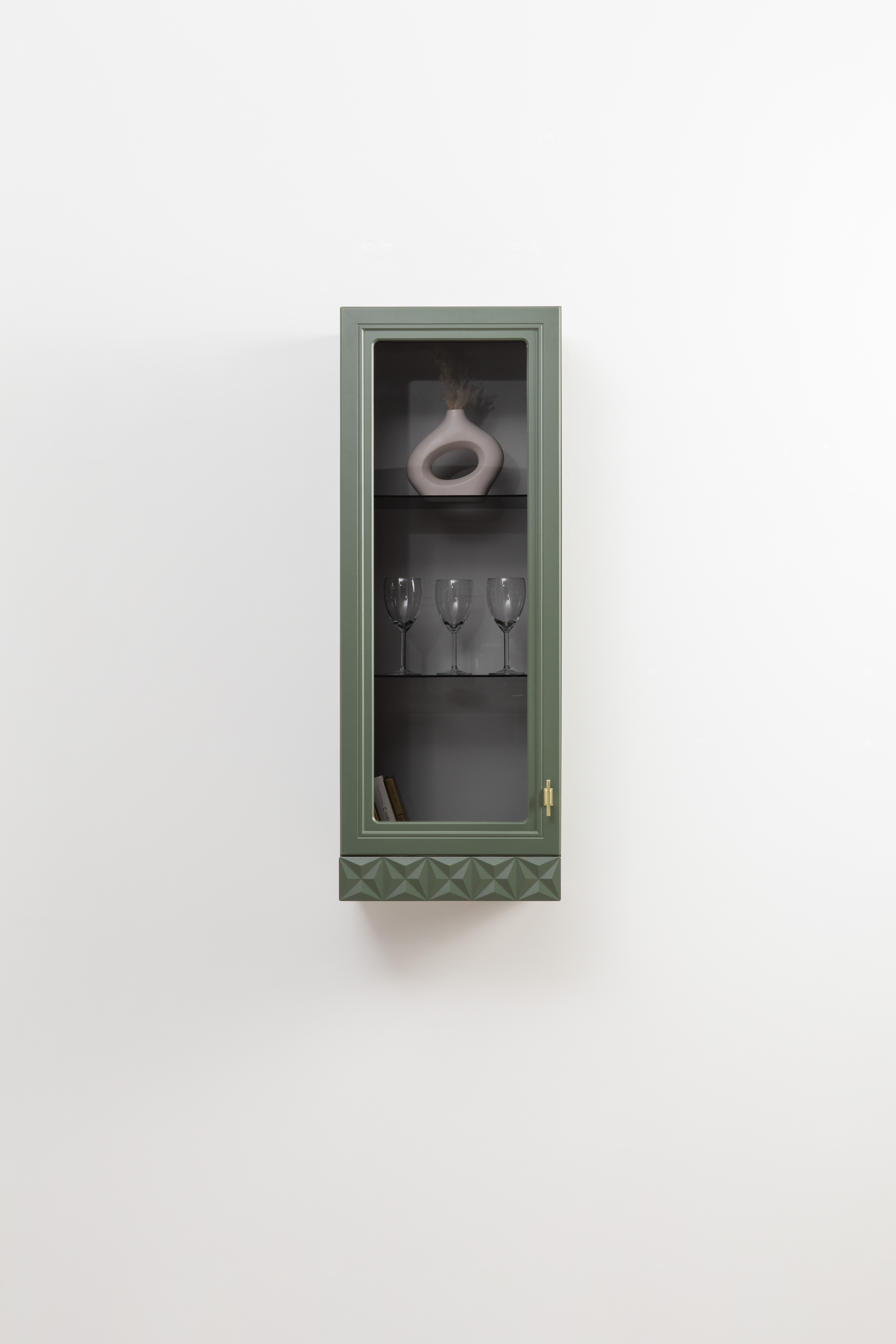 Шкаф-витрина Марион 16.397.02 дымчатый зеленый K521, олива шагрень AG 1050 ПВХ