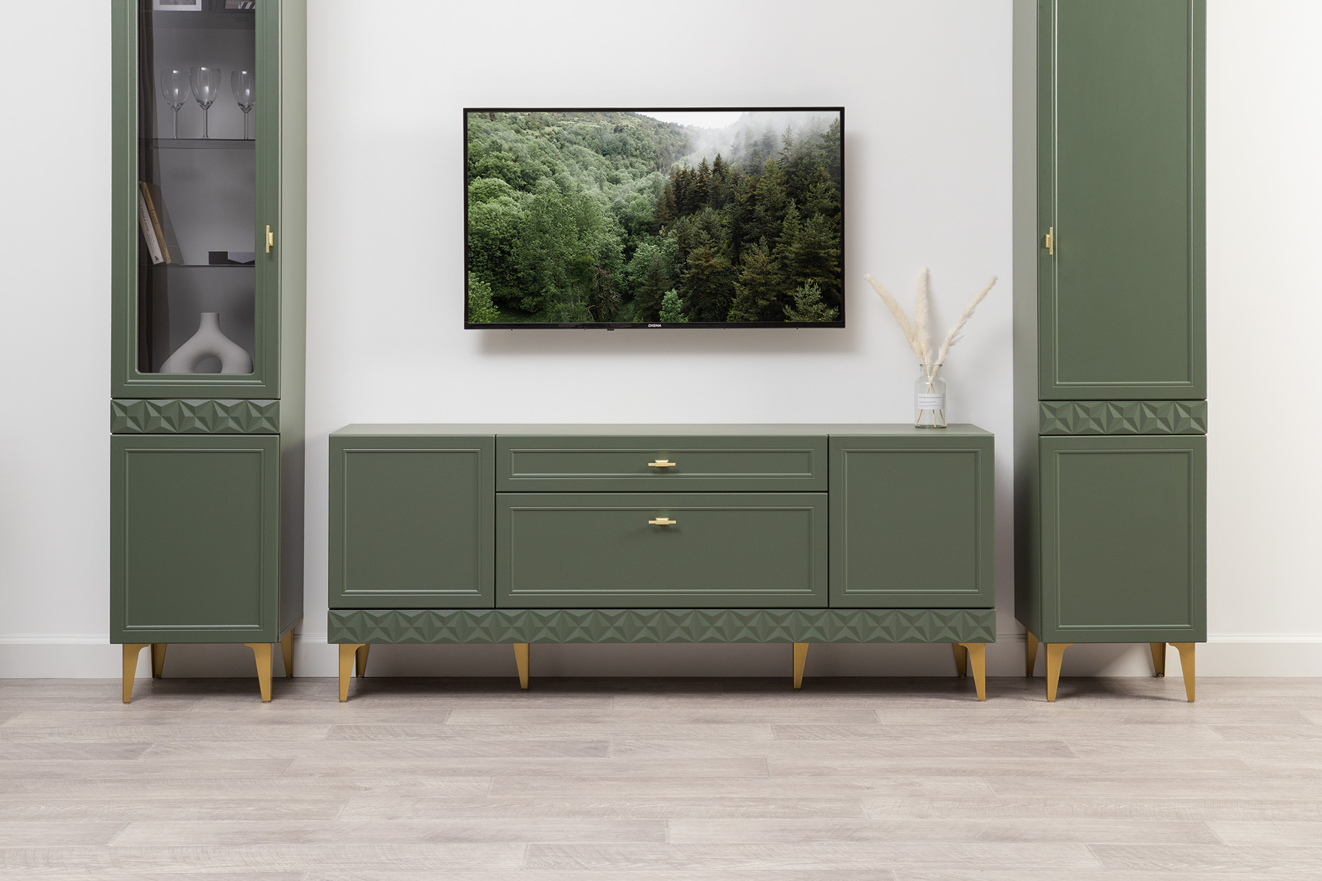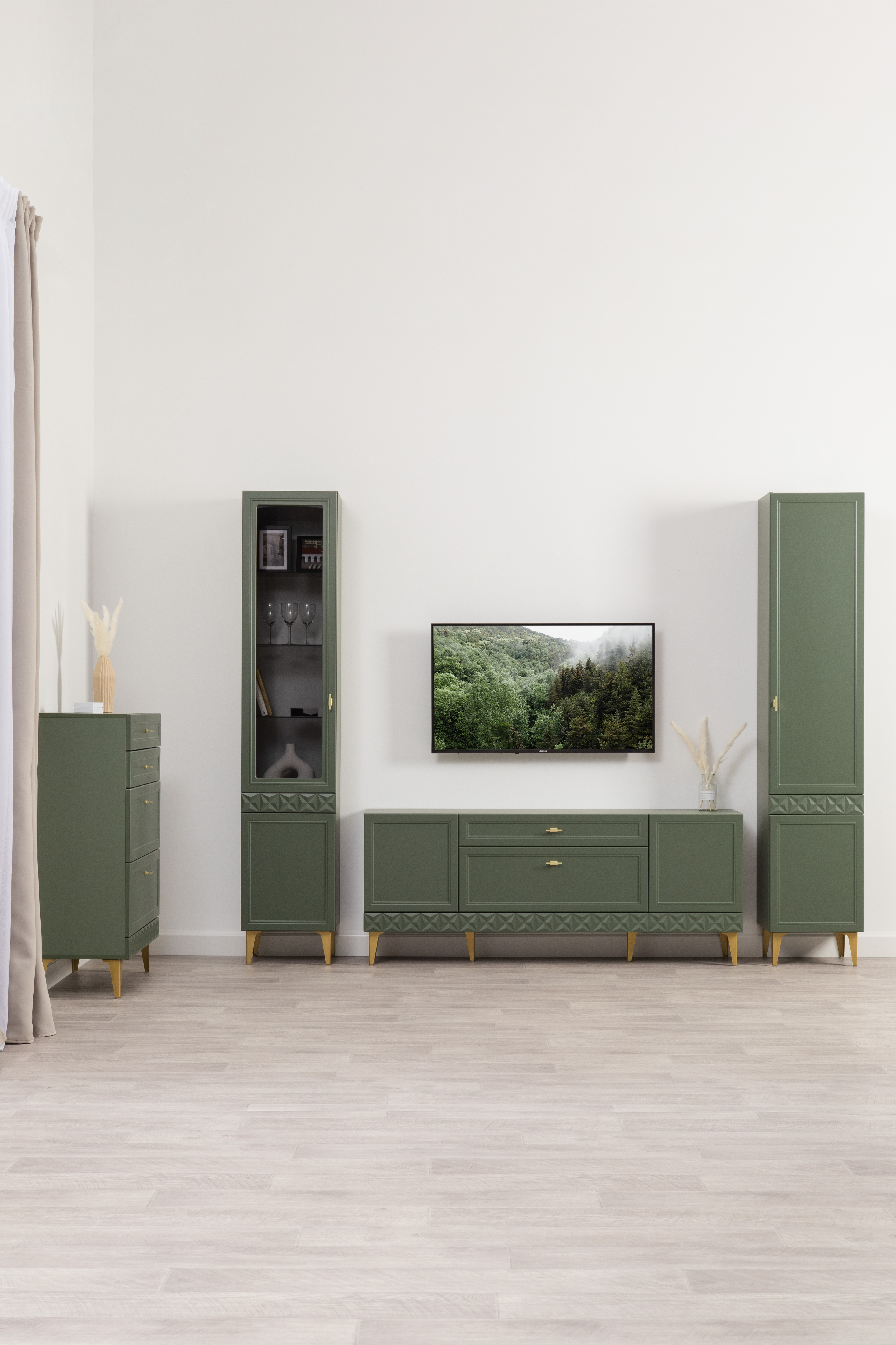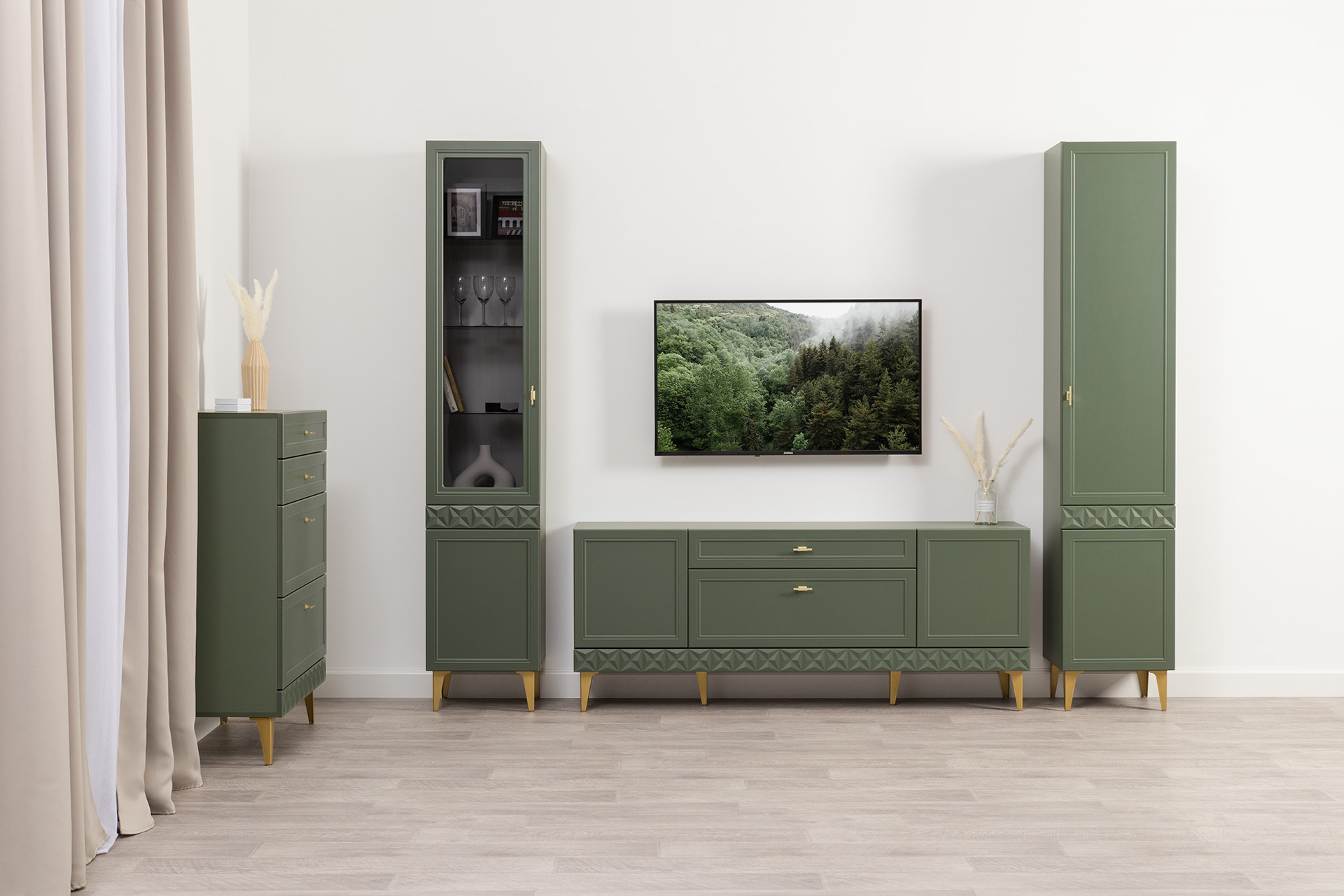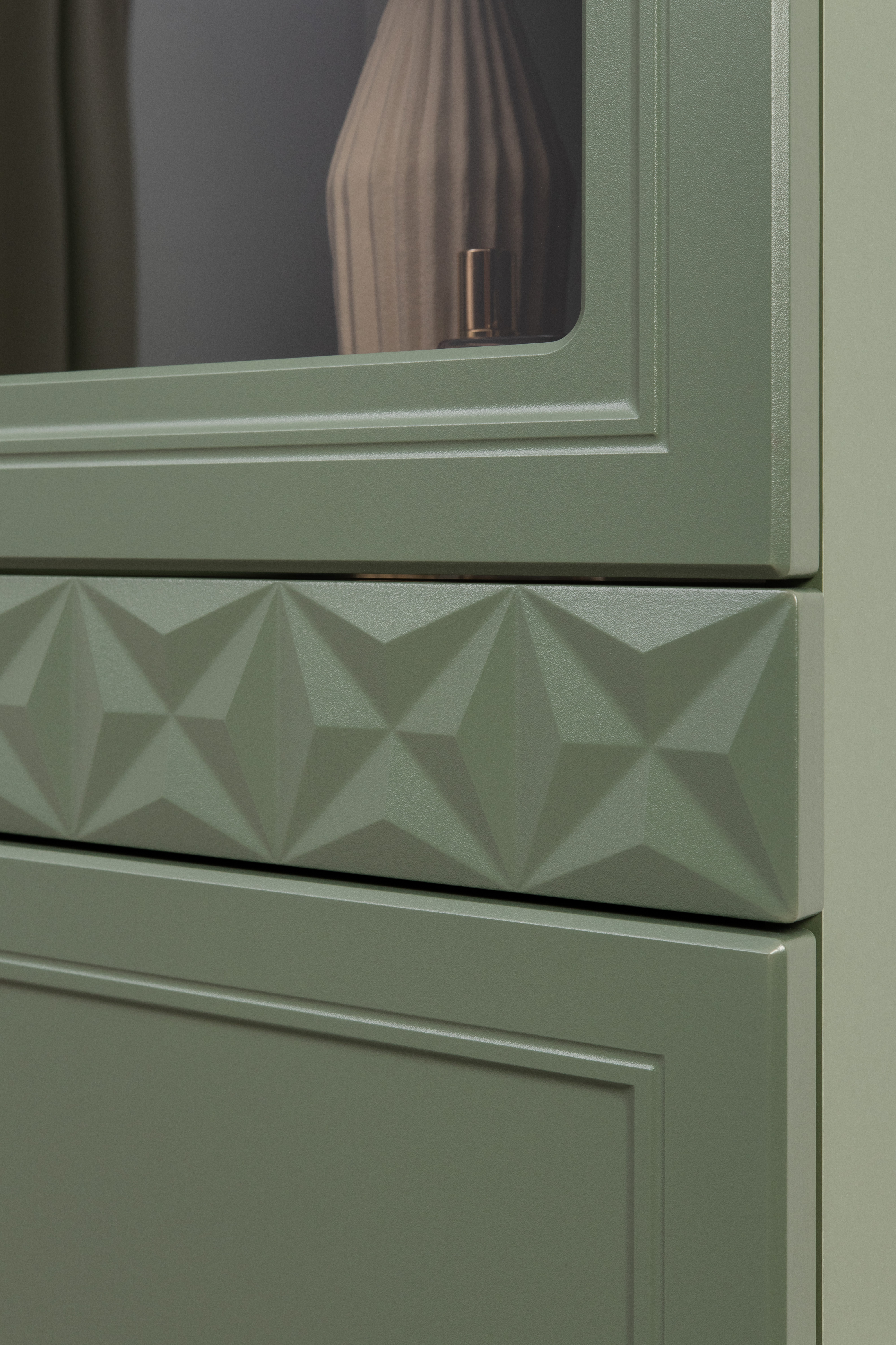 Комод Марион 16.249 дымчатый зеленый K521, олива шагрень AG 1050 ПВХ, белый PE шагрень