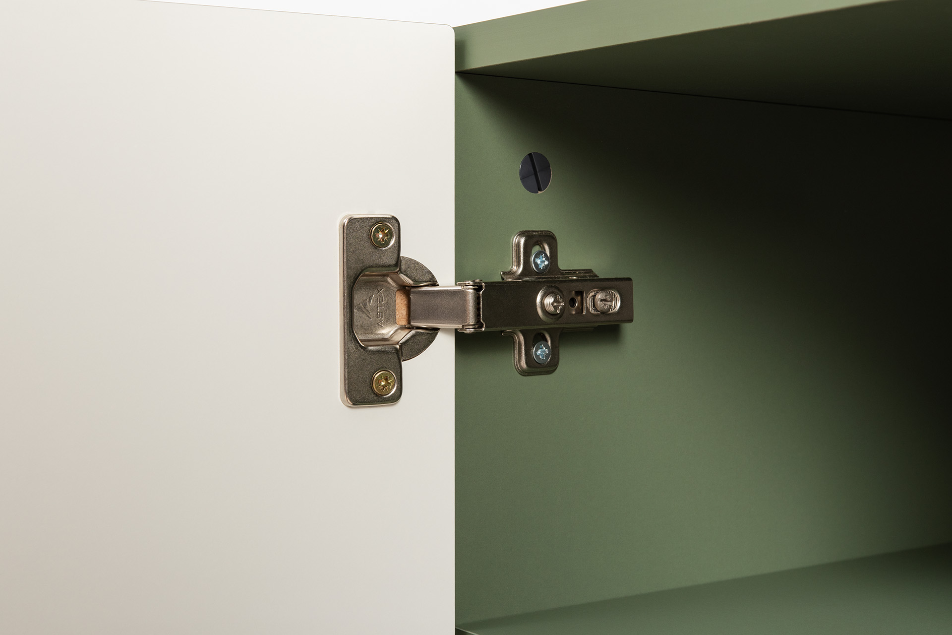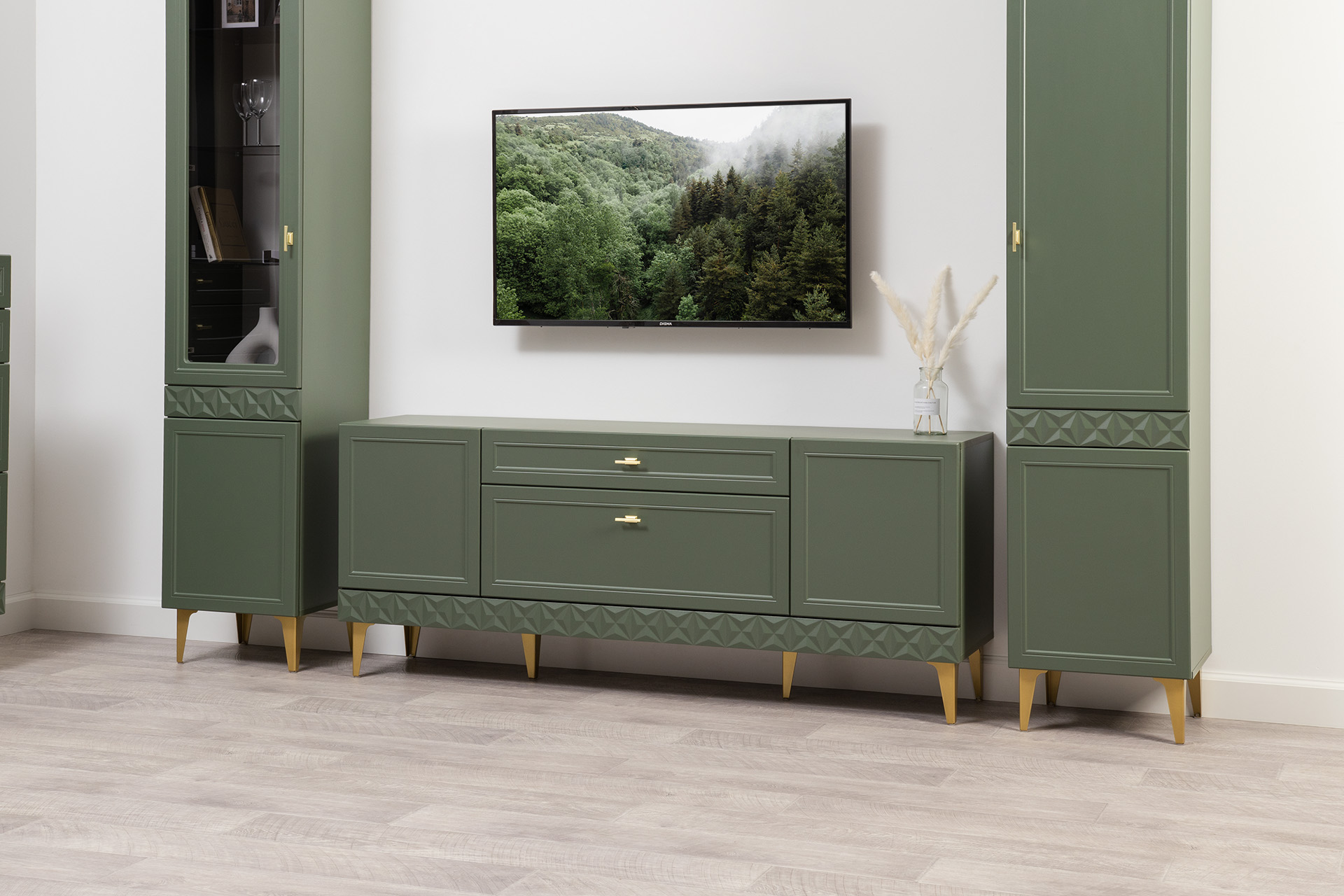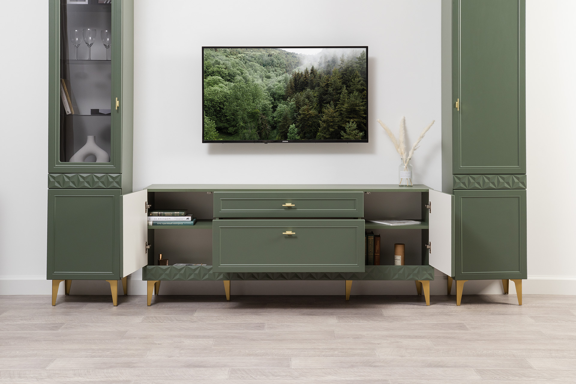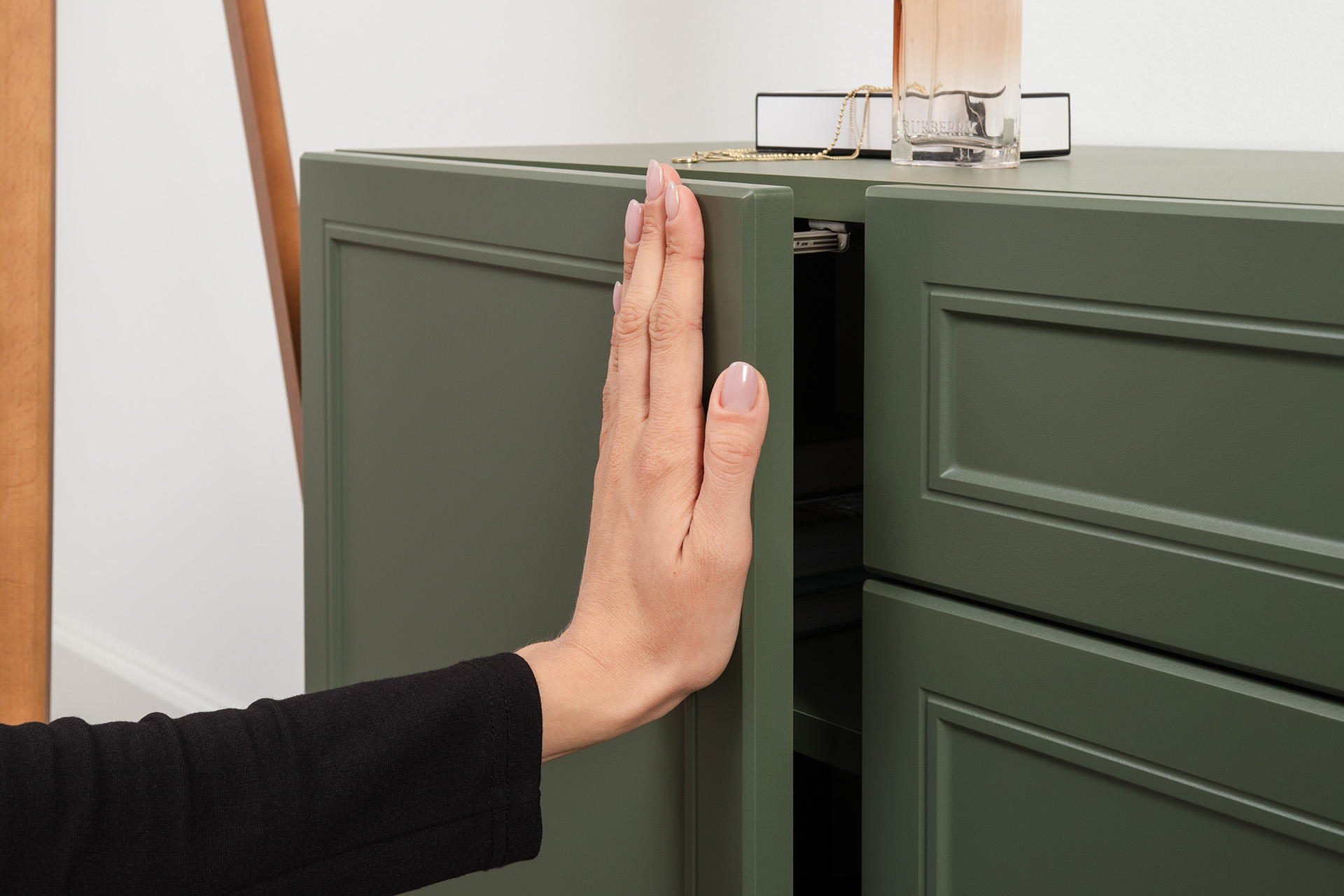 Комод Марион 16.249 дымчатый зеленый K521, олива шагрень AG 1050 ПВХ, белый PE шагрень
