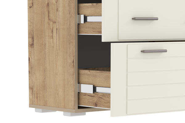 Комод Лакки бук песочный, дуб тортуга ПВХ, белый глянец ПВХ