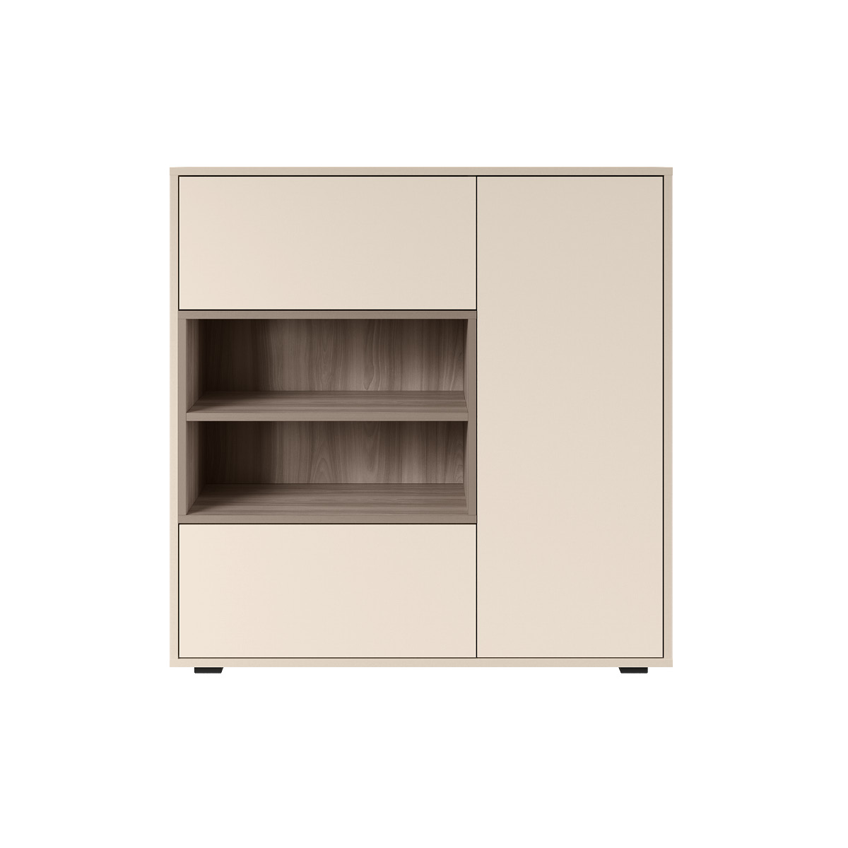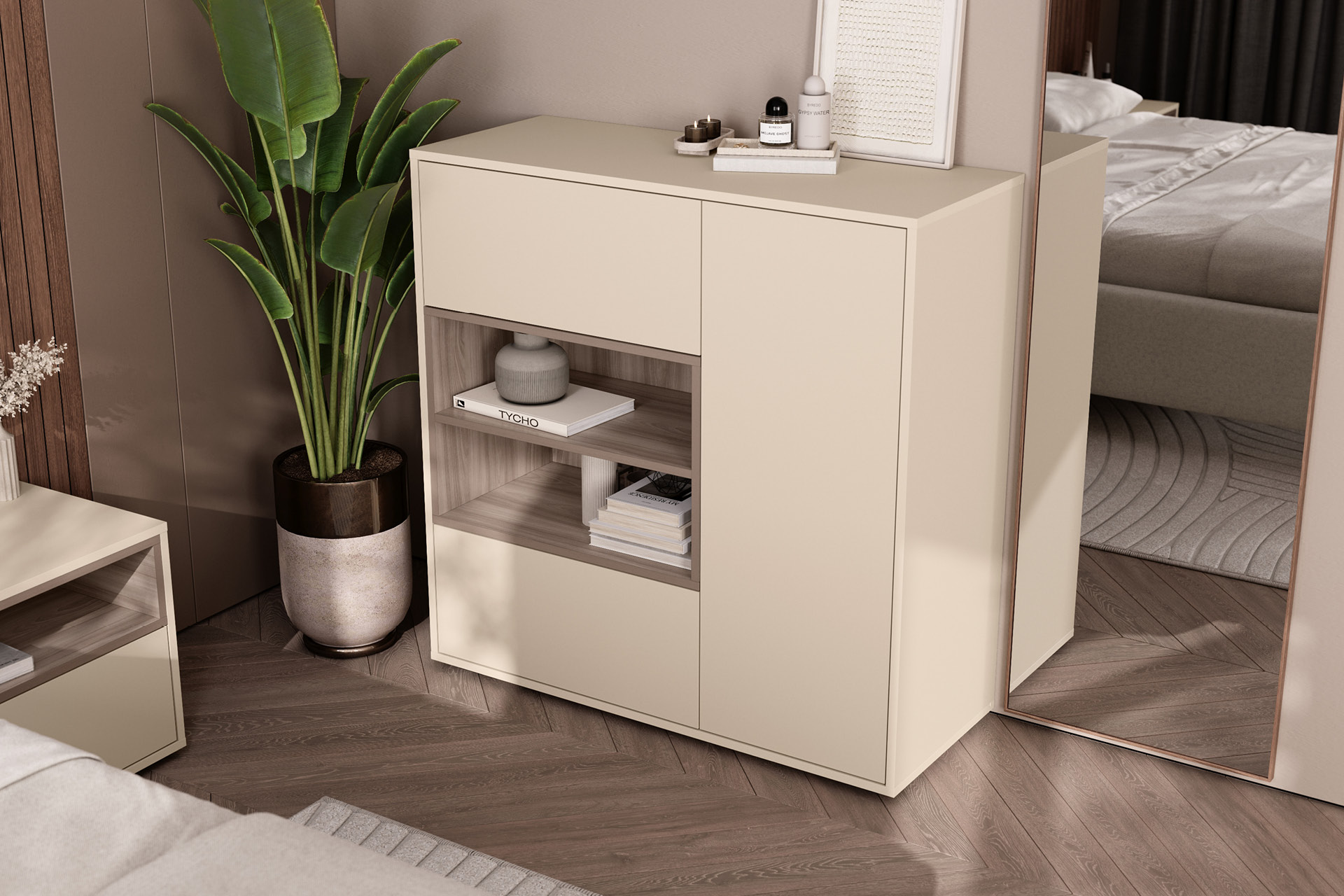 Комод Тайл 16.236 сатин 7045 SU, эмили блаш U9135, белый PE шагрень, собирается на любую сторону