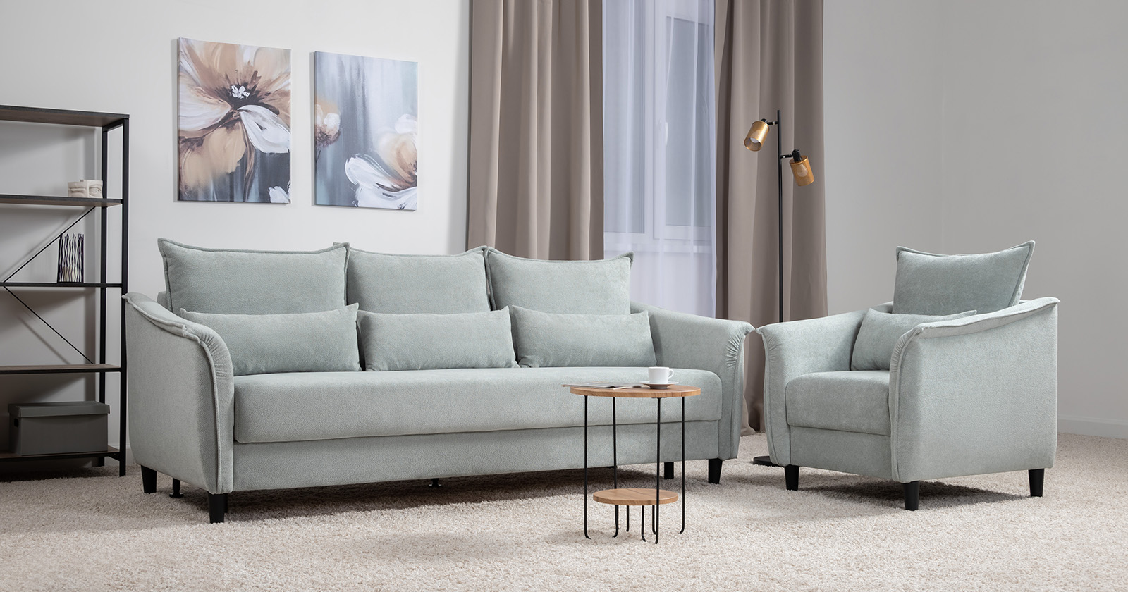Изогнутые подлокотники в форме лепестков придают коллекции изысканный и элегантный вид, а дополнительные декоративные подушки обеспечат поддержку поясницы и помогут уютно устроиться на кресле.