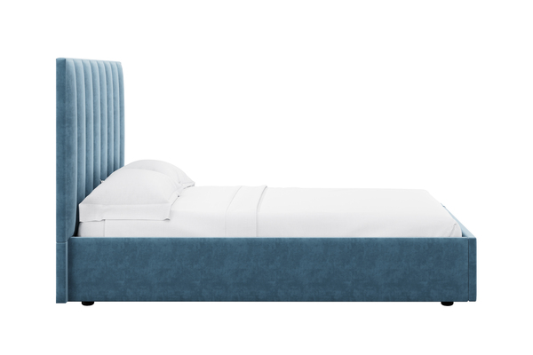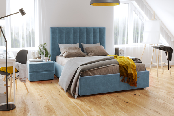Подъемный механизм легок в управлении, а вместительный короб внутри кровати подойдет для хранения подушек, белья и других вещей. Мягкие тканевые ручки облегчают процесс подъема основания. Купить кровать можно удобным способом: оформить заказ в интернет- магазине, положив товар в корзину. С кроватями можно приобрести комод и тумбу «Ester». Ткань обивки возможно выбрать в цвет с кроватью, из представленных вариантов велюра.
