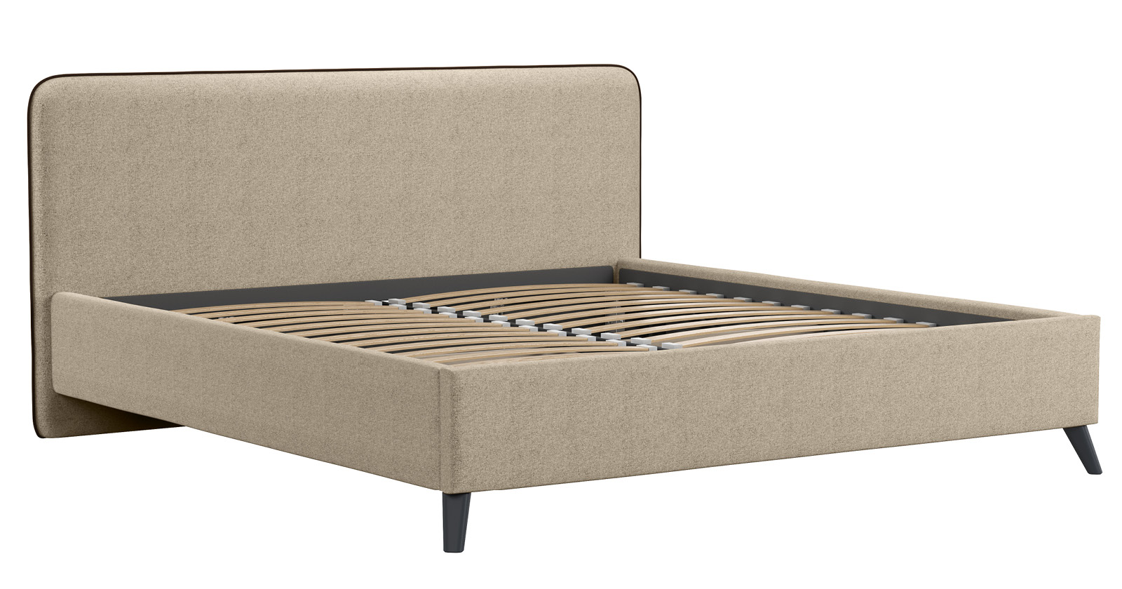 Cкругленный торец изголовья оформлен контрастным кантом.