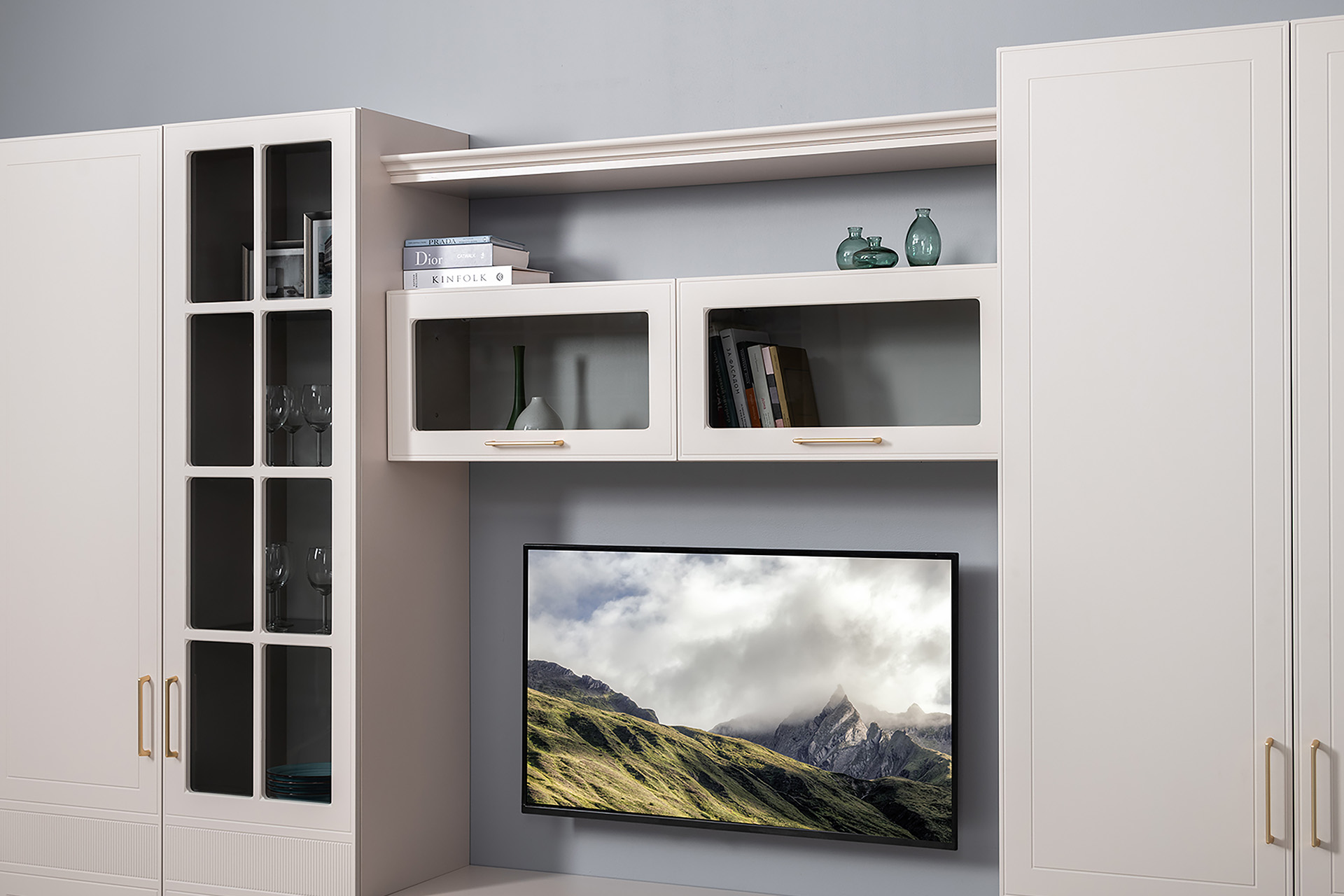 Шкаф навесной в гостиную Бэль 10.63 белый премиум, дуб золотой CRAFT