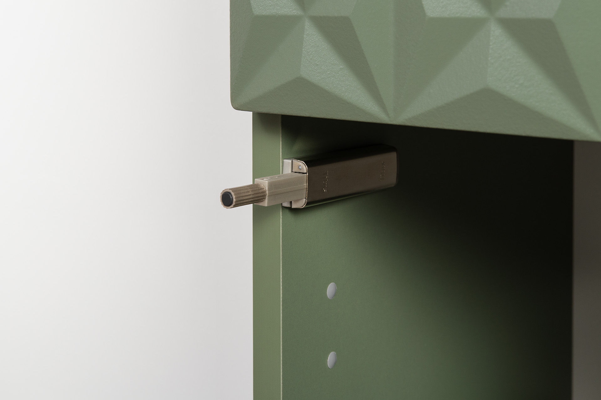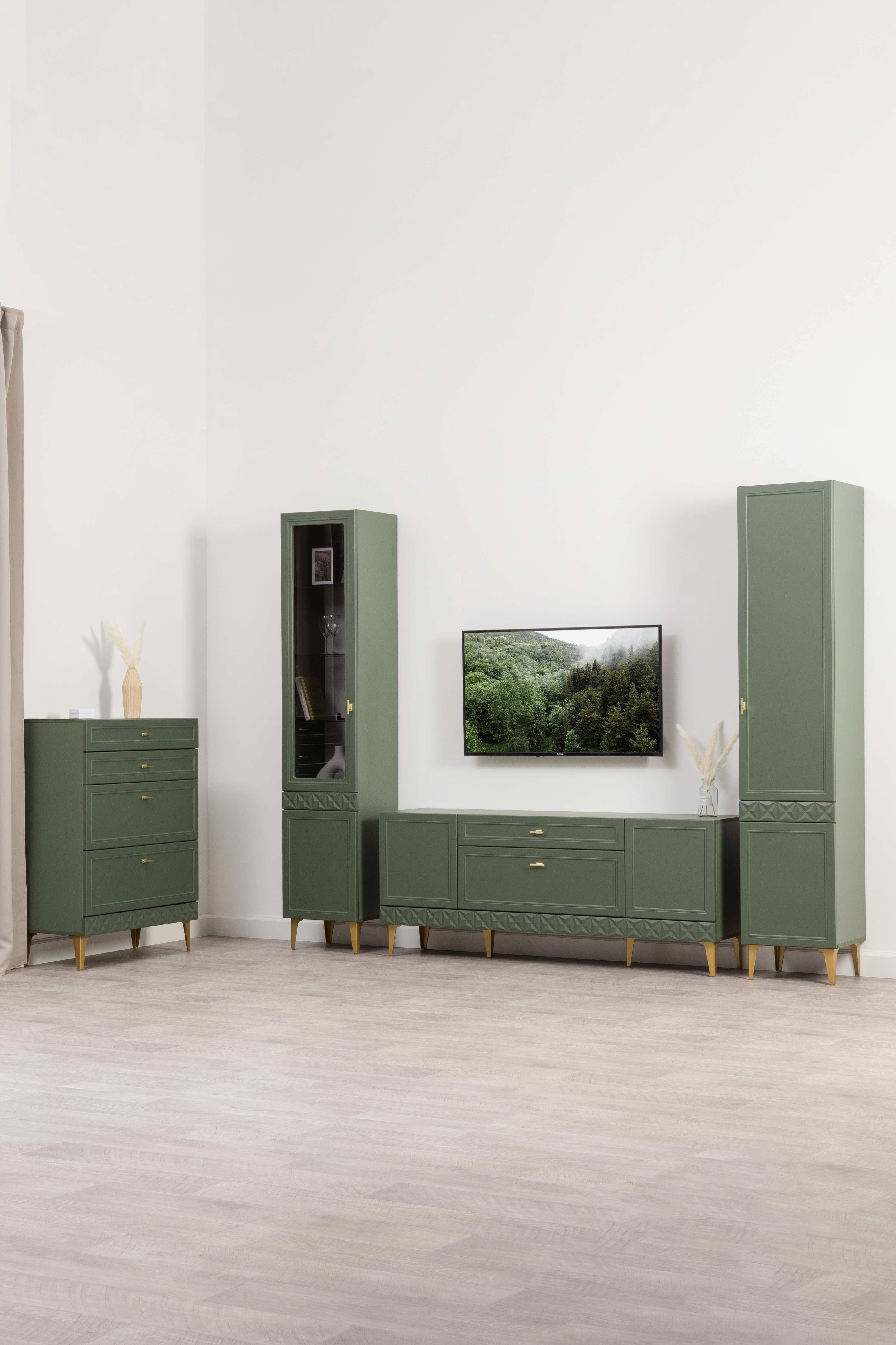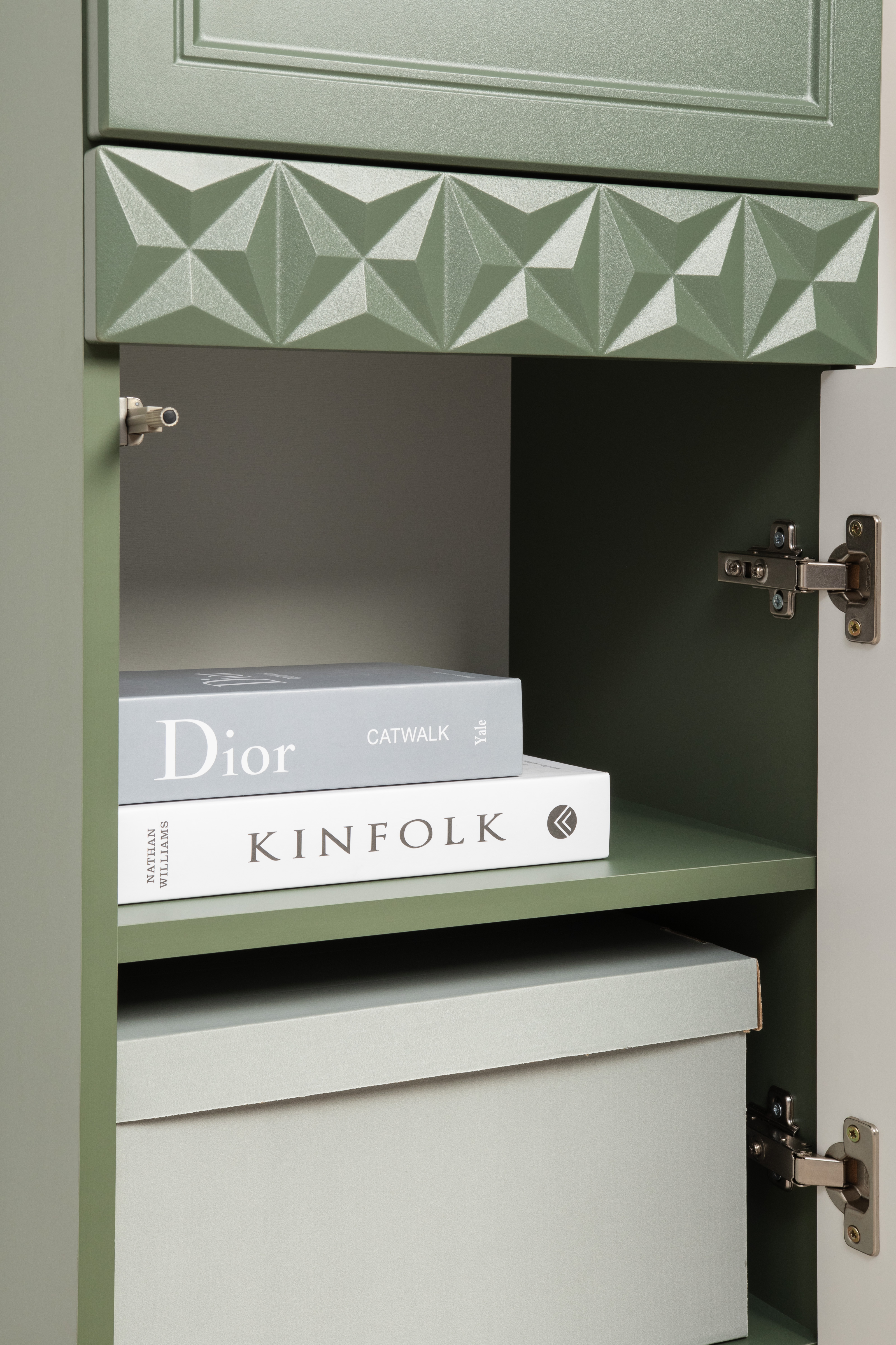 Шкаф-пенал Марион 16.333.01 дымчатый зеленый K521, олива шагрень AG 1050 ПВХ (собирается на любую сторону)