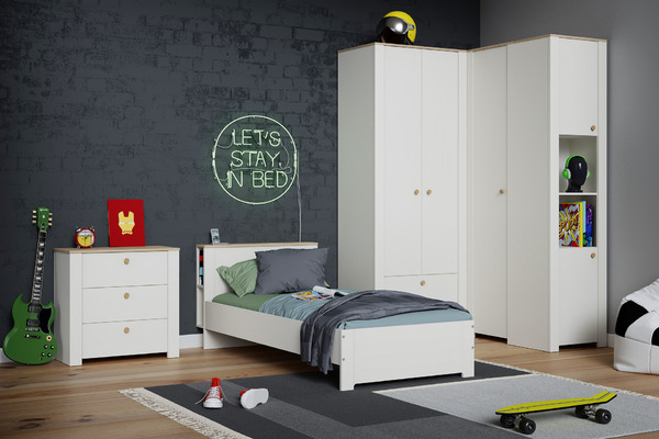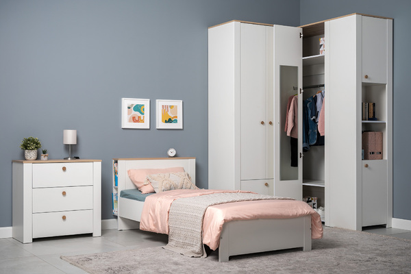 Джастин – новинка в скандинавском стиле. Светлая и лаконичная, она станет не акцентом, а идеальным фоном для жизни, учебы, отдыха и игр.