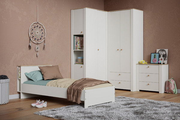Джастин уникален тем, что подходит для разных возрастных категорий: для малышей – кроватка с защитным бортиком, съемными тканевыми кармашками и выкатными ящиками; для подростков – кровать с полноценным спальным местом и нишей для книг в изголовье; всевозможные модули для хранения. А в ящик письменного стола можно спрятать под замочек свои сокровища и секреты.
