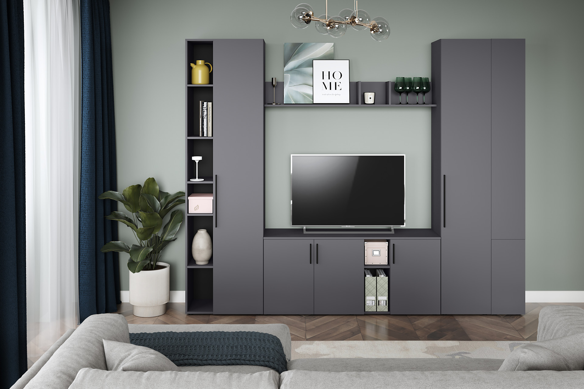 Тумба под ТВ Эйр 16.55 серый графит 0162 РЕ, собирается на любую сторону