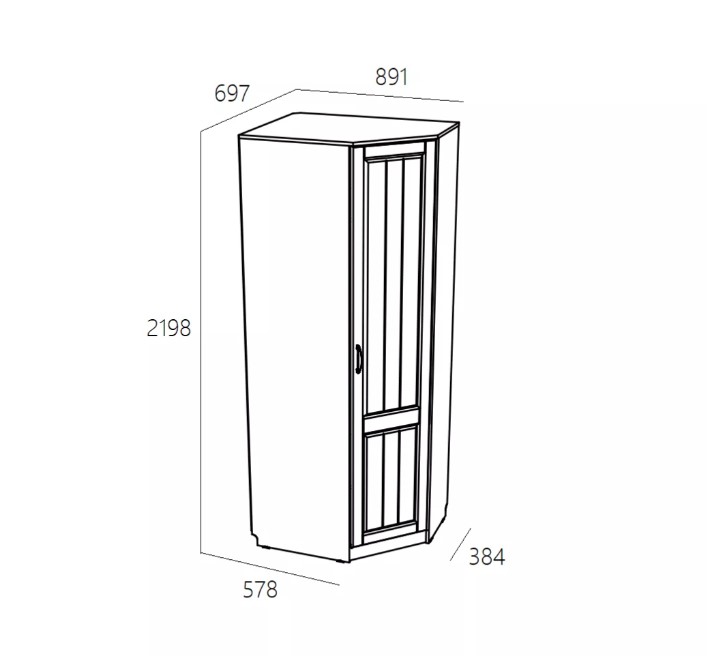 Со шкафом Оливия НМ 014.11 X получится максимально использовать пространство в комнате, задействовав место в углу. Внутри модуль разделен на две функциональные зоны. Секция с пятью полками подходит для хранения одежды в сложенном виде, а на штанге в другой половине шкафа можно разместить одежду на вешалках-плечиках. Две широкие полки, расположенные над и под штангой, удобны для хранения коробок.