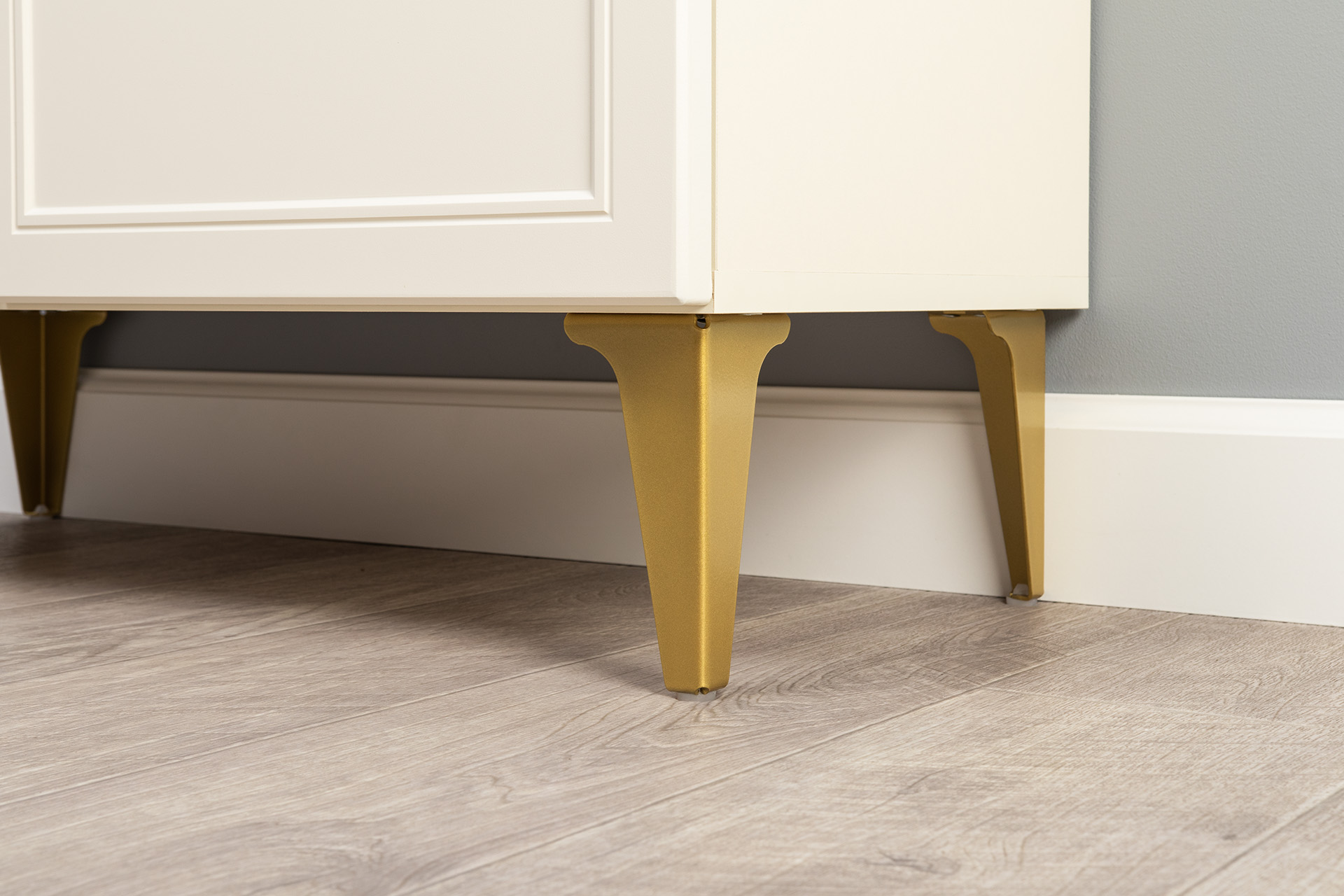 Изящные линии, глубокая фрезеровка фасадов из МДФ и благородные оттенки. Утончённая «Слоновая кость» и изысканная «Олива Шагрень» с глубоким зелёным тоном — создают атмосферу уюта, тепла и благородства. Металлические ручки и опоры золотого цвета придают мебели утончённый блеск, а петли и направляющие с доводчиками обеспечивают плавное и бесшумное закрытие фасадов.