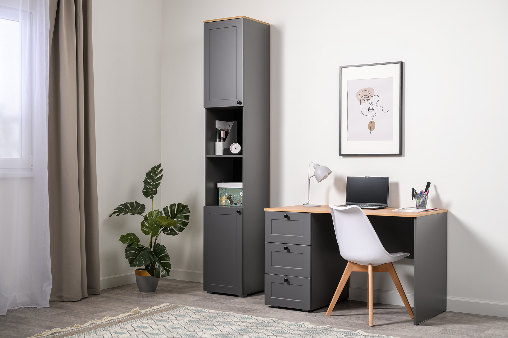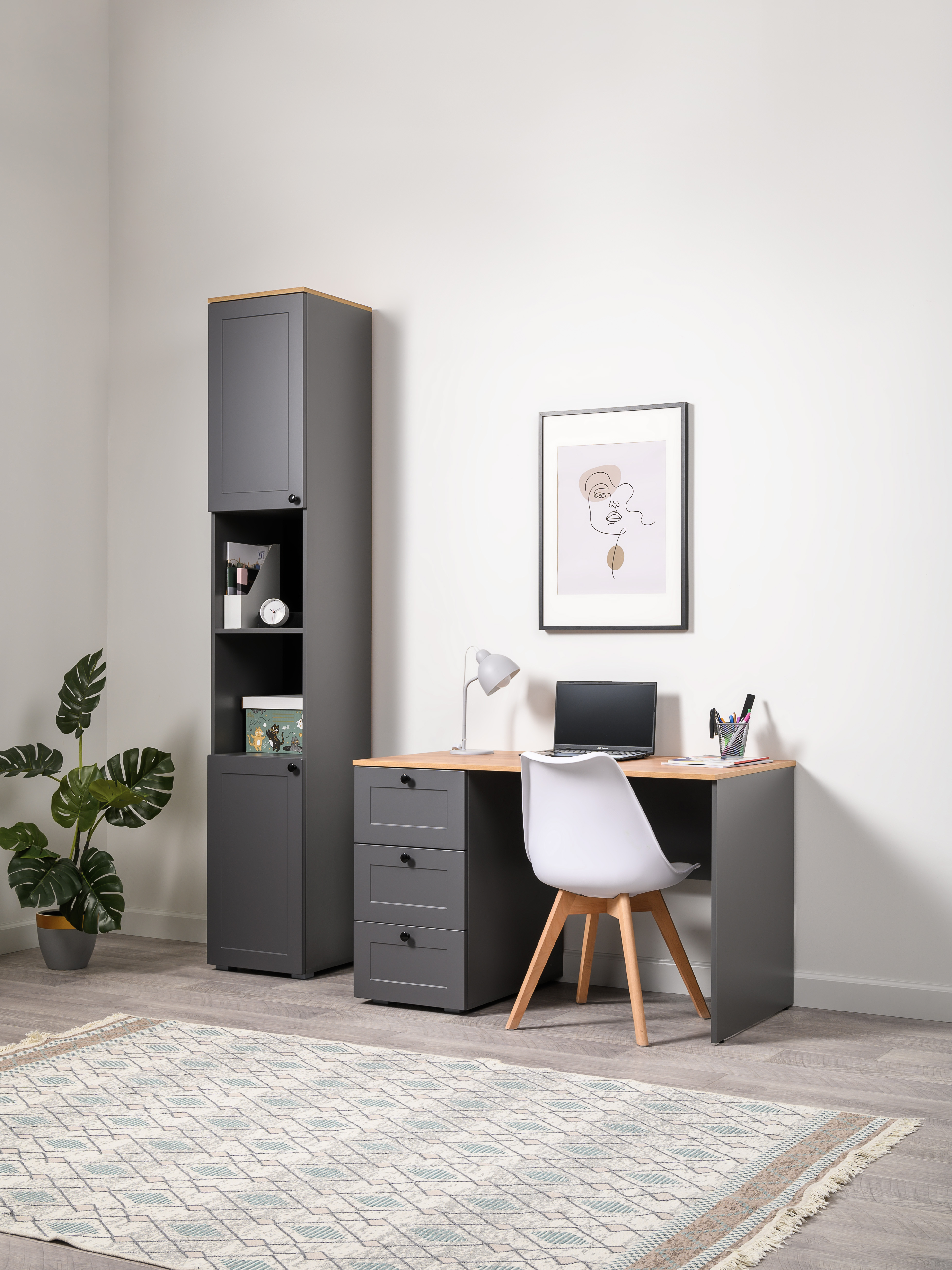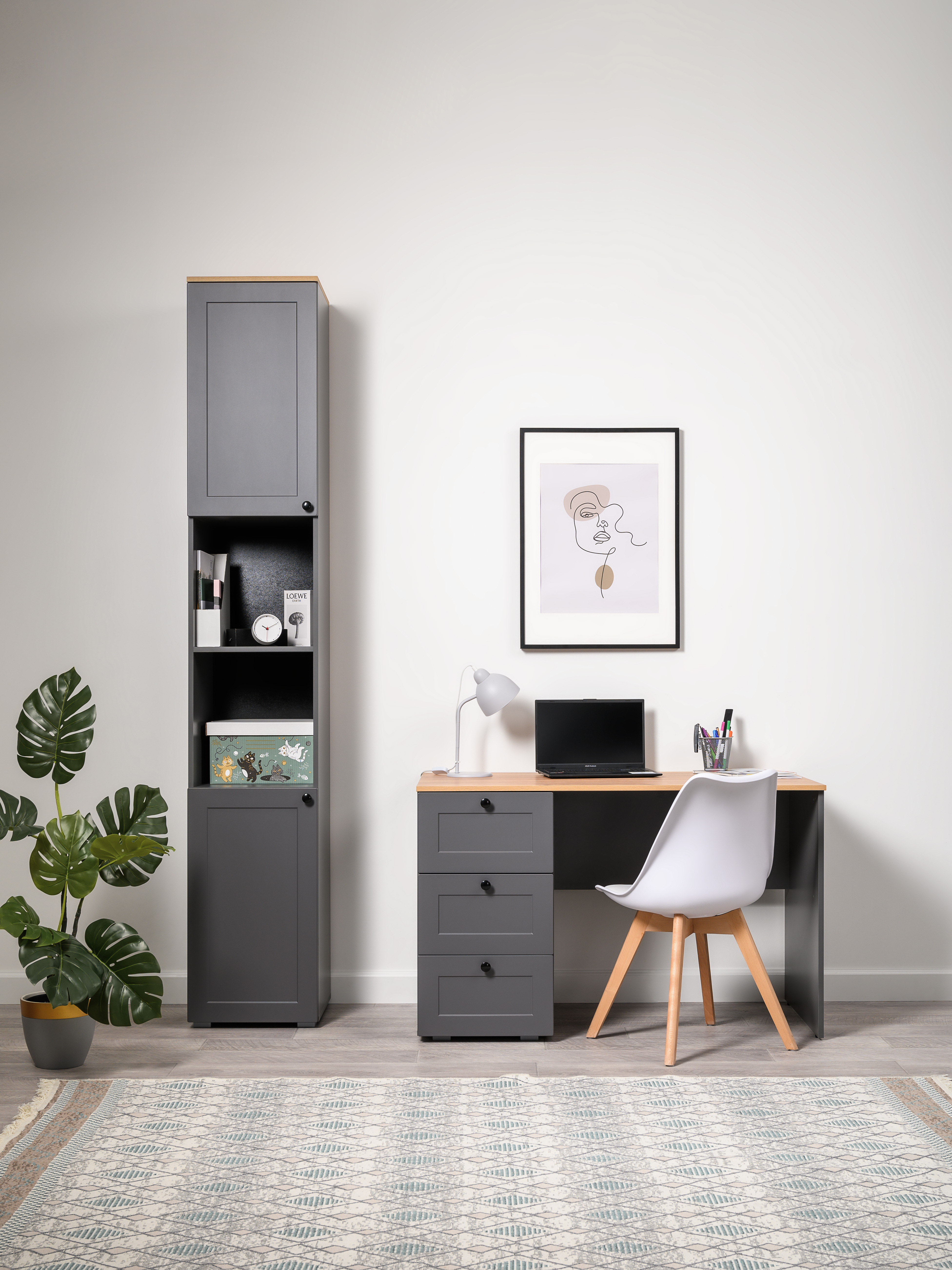 Стол письменный Остин 12.159 серый графит 0162 РЕ, дуб золотой CRAFT, графит ZB 856-2 ПВХ, сборка на любую сторону