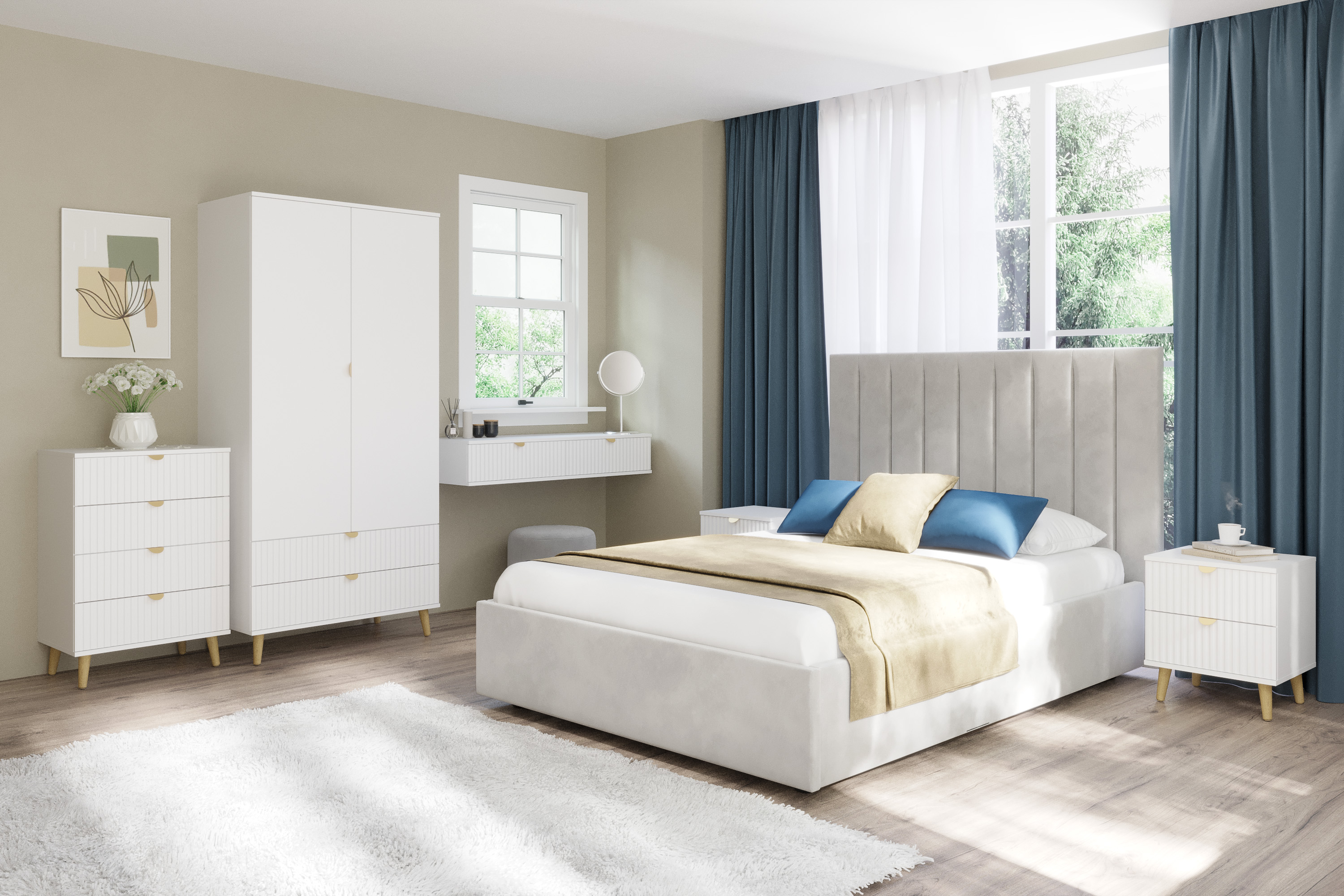 Прикроватная тумба оснащена двумя выдвижными ящиками, которые открываются плавно и бесшумно благодаря шариковым направляющим, а высокие опоры облегчают процесс уборки.