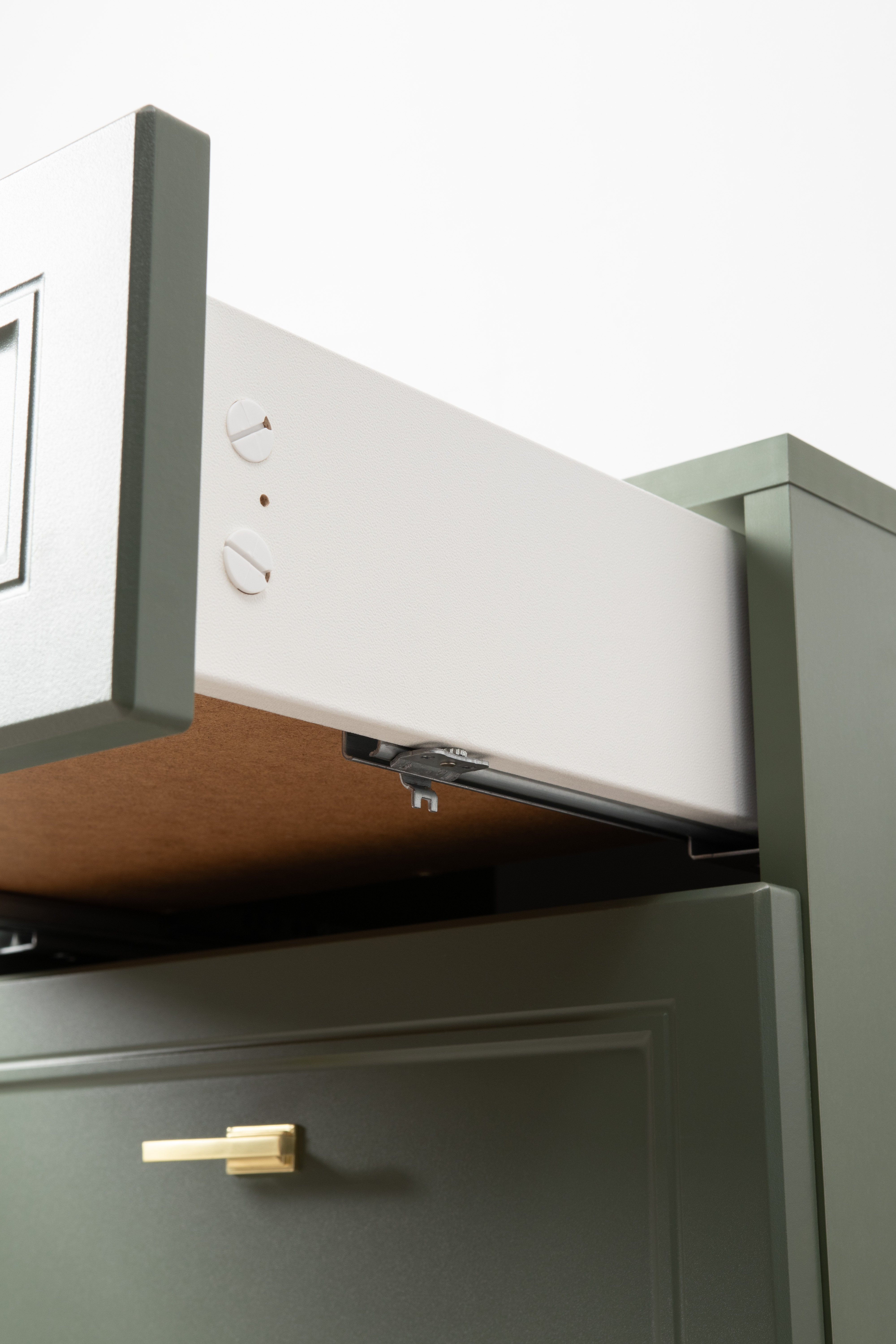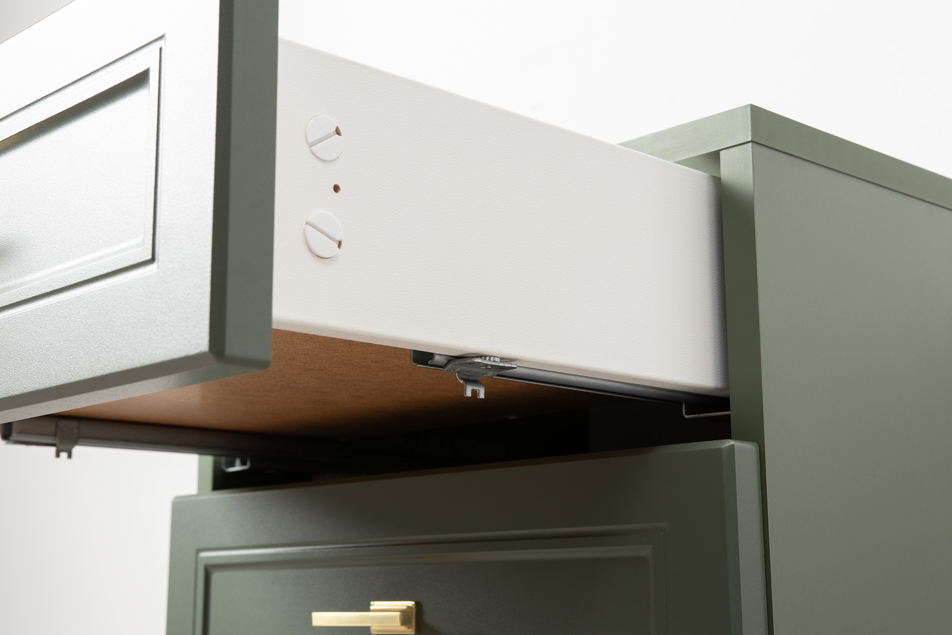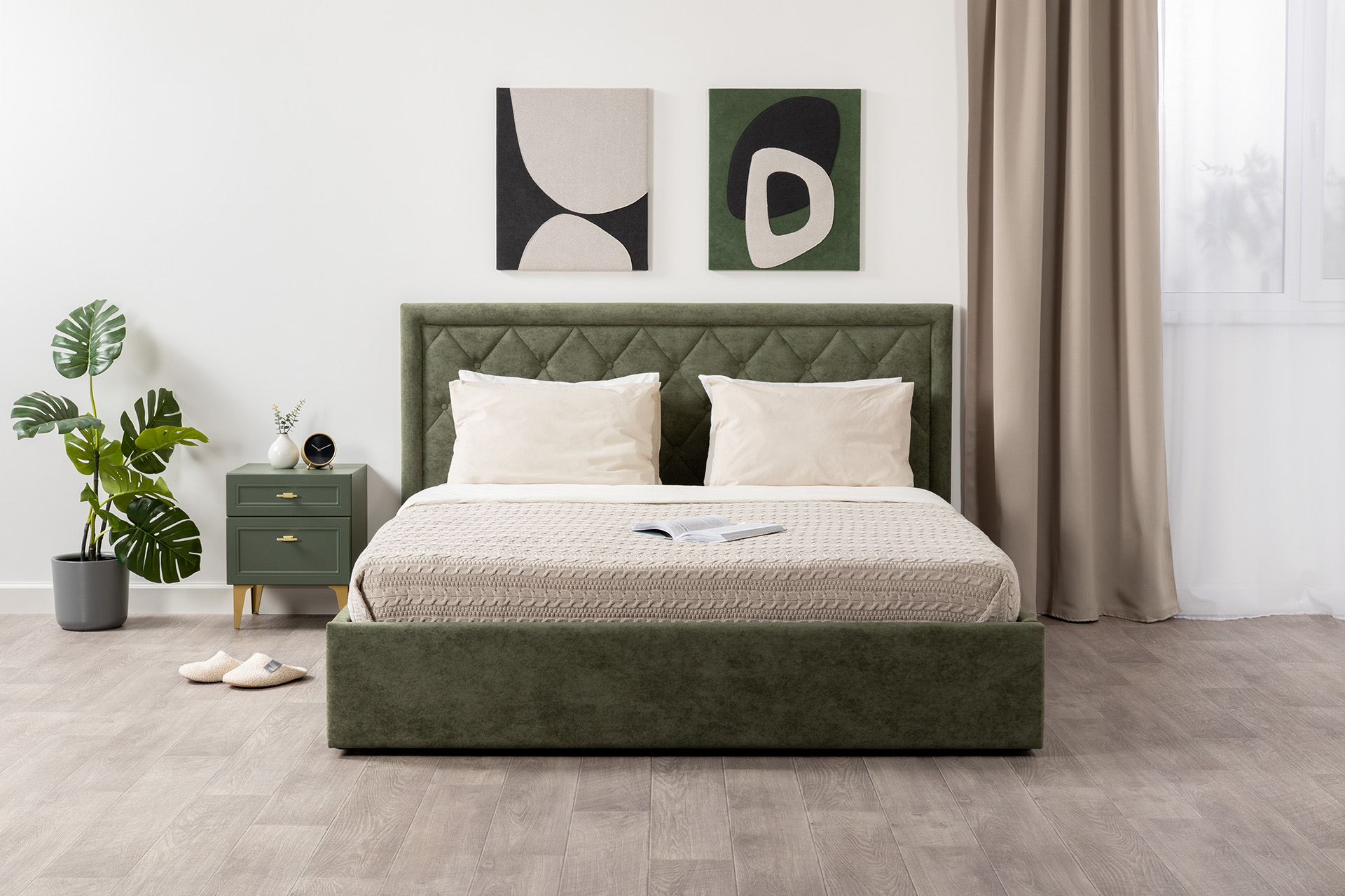 Тумба прикроватная Марион 16.14 дымчатый зеленый K521, олива шагрень AG 1050 ПВХ, белый PE шагрень