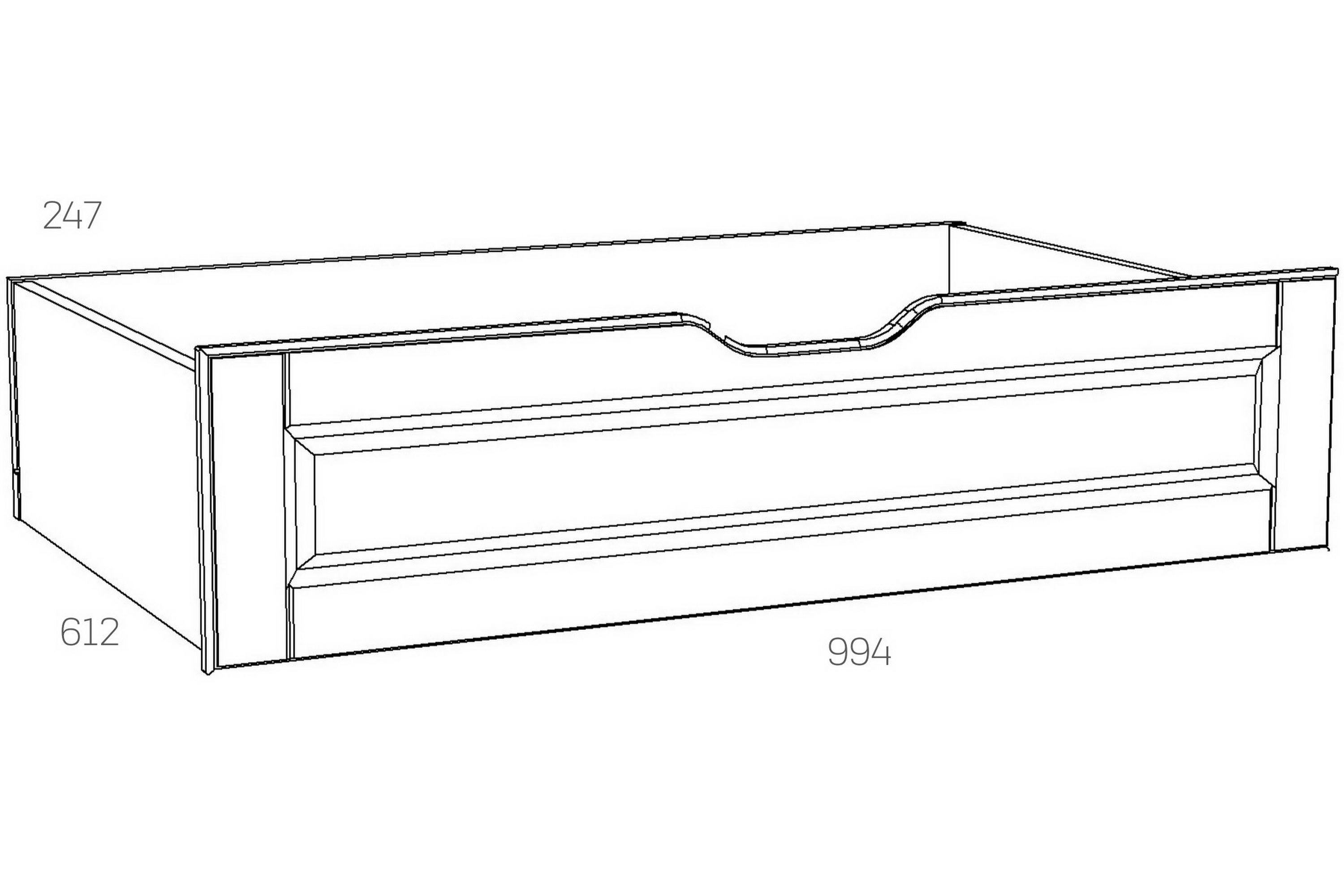 Бельевой ящик Оливия НМ 040.39-02 Х станет функциональным дополнением к кровати НМ 040.34-02 Х из одноименной коллекции. У модуля предусмотрена интегрированная ручка вместо накладной, что делает его эксплуатацию безопасной. На дно модуля устанавливаются колесики, которые предотвращают повреждения напольного покрытия при выдвижении ящика.